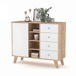 Комод Аллегро 14 BMS станет практичным выбором для небольших помещений благодаря компактным размерам. Лаконичная модель в скандинавском стиле располагается на высоких скошенных ножках и выполнена в сочетании древесных тонов и белого. В центральной части комода имеются открытые полки для необходимых под рукой вещей, а по бокам модель оборудована глухим отделением и четырьмя выдвижными ящиками. Купить комод Аллегро 14 BMS приглашаем недорого в наш интернет-магазин.