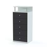 Комод Аризона 10 BMS ‒ отличный вариант, который подойдет при обстановке гостиной и спальной комнаты. Небольшие габариты позволят Вам сэкономить свободное пространство. Пять широких ящиков легко вместят большое количество Ваших вещей, а открытая полочка сверху позволит хранить необходимые вещи всегда под рукой. Красивый и в то же время простой дизайн отлично подойдет к любому интерьеру. Купить недорого данный комод Вы можете на сайте нашего магазина.