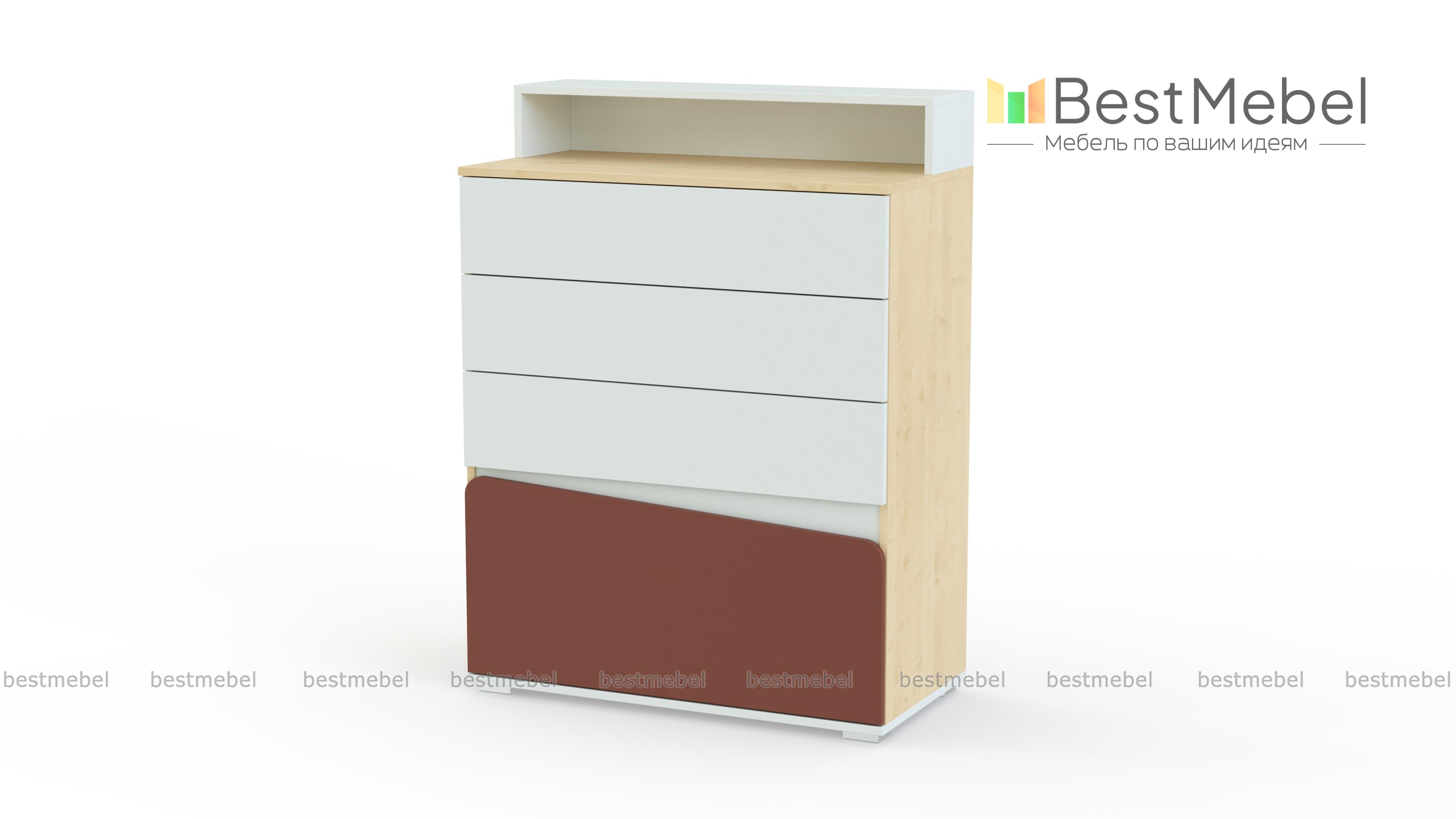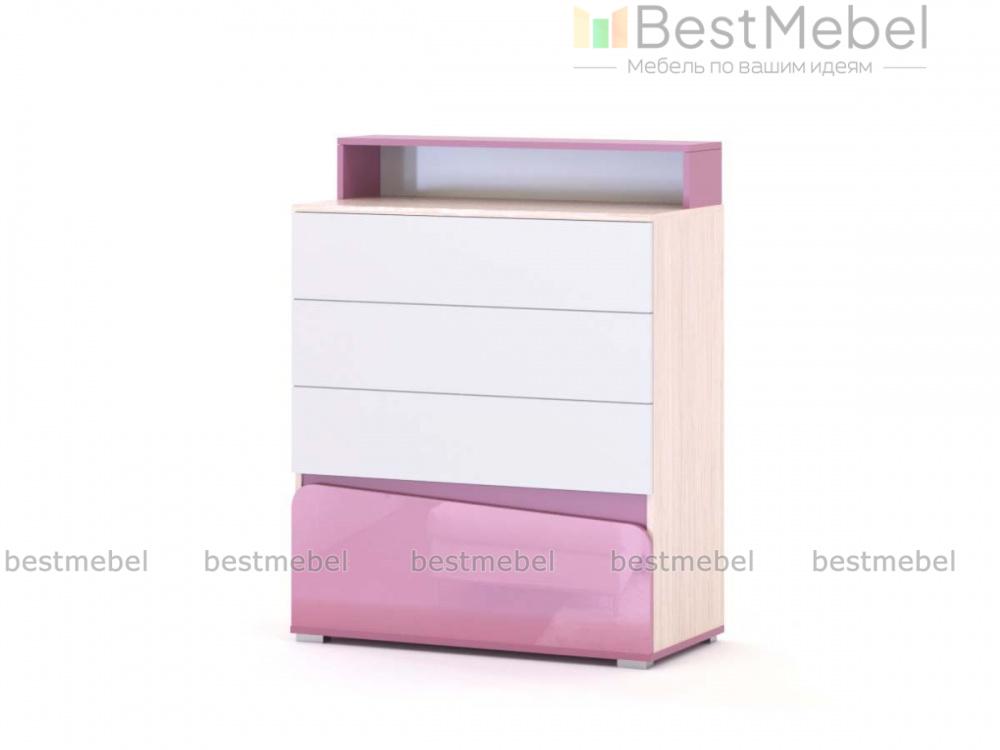 Комод для детской Алиса BMS отличается ярким дизайном и функциональностью. Четыре выдвижных ящика разной высоты и широкая столешница с надстройкой помогут легко поддерживать в комнате порядок и компактно разместить постельное белье, одежду в сложенном виде, аксессуары и множество мелочей. Комод выполнен в белом цвете с контрастными вставками, фасад нижнего ящика асимметрично вырезан и скруглен по краям. Купить комод для детской Алиса BMS и дополнить систему хранения практичным предметом вам поможет наш интернет-магазин.