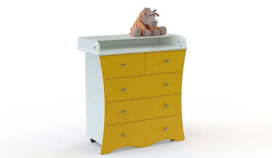 Комод пеленальный Синтия 4 BMS с изящным фигурным фасадом украсит интерьер детской и сделает удобным уход за малышом. Продуманная система хранения включает в себя три больших и два малых выдвижных ящика, а для переодевания ребенка предусмотрен откидной пеленальный столик со скругленными защитными бортиками. С помощью колесиков комод легко перемещать для уборки или перестановки. Купить комод пеленальный Синтия 4 вы сможете в нашем интернет-магазине, подобрав наиболее подходящее цветовое решение.
