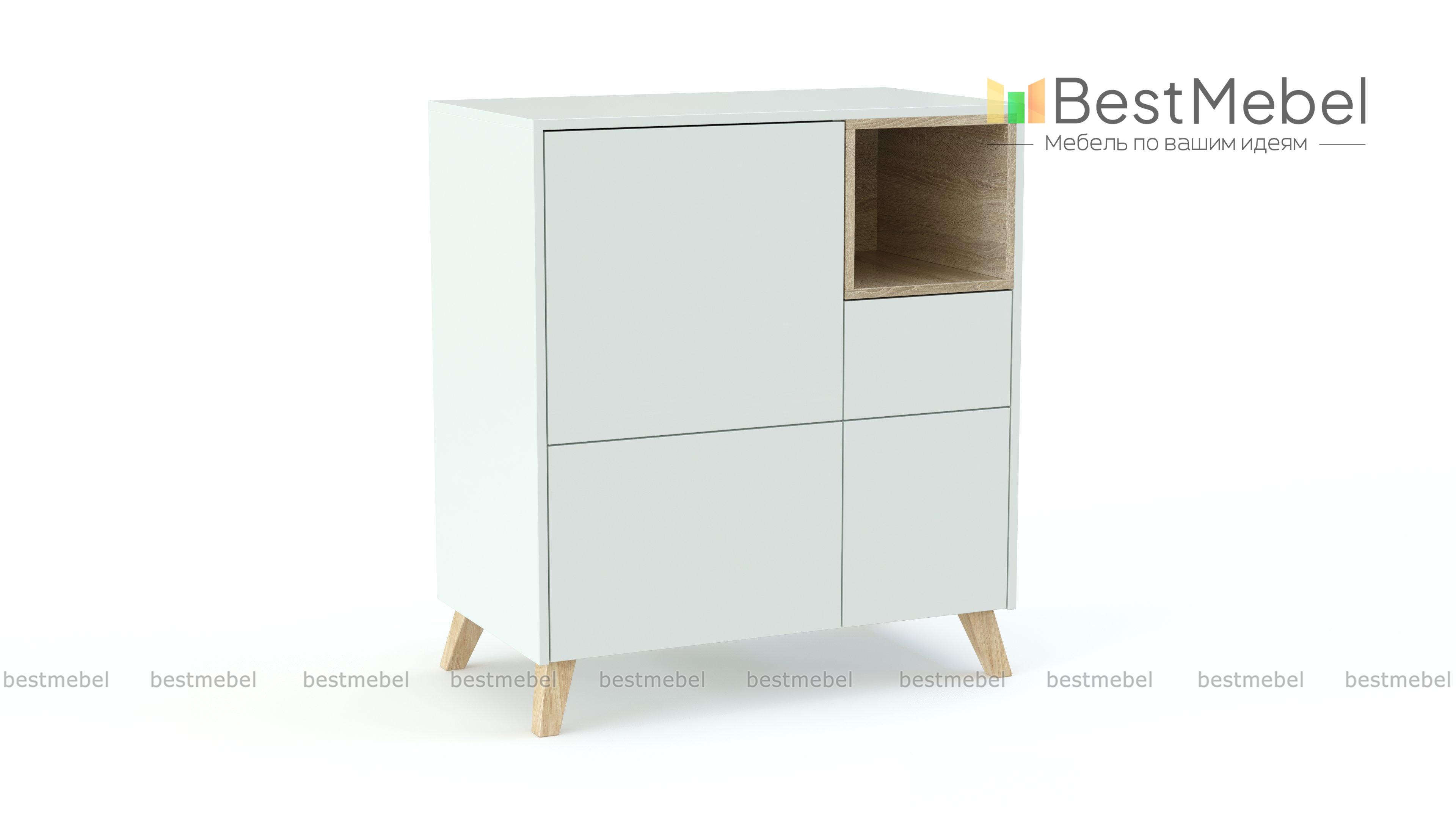 Комод Пенелопа 2 BMS со сплошным гладким фасадом отличается стильным минимализмом в отделке и продуманным расположением секций. Три выдвижных ящика разных размеров, распашное отделение с полкой и выделенная контрастным цветом ниша прекрасно подходят для хранения мелочей и более объемных вещей. Высокие ножки комода выполнены в оттенке светлого дерева. Купить комод Пенелопа 2 BMS вы сможете в нашем интернет-магазине с изготовлением по индивидуальным размерам.