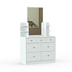 Комод с зеркалом Бридж-2 BMS станет прекрасным выбором для небольших спален, помогая сэкономить на лишней мебели. Модель выгодно отличается компактными размерами и выполнена в светлых белых тонах. Вместительный комод с шестью выдвижными ящиками разных размеров для белья, одежды и бытовых мелочей дополнен надстройкой с открытыми полочками под уходовые средства и навесным зеркалом. Купить комод с зеркалом Бридж-2 BMS приглашаем в наш интернет-магазин по доступной цене.