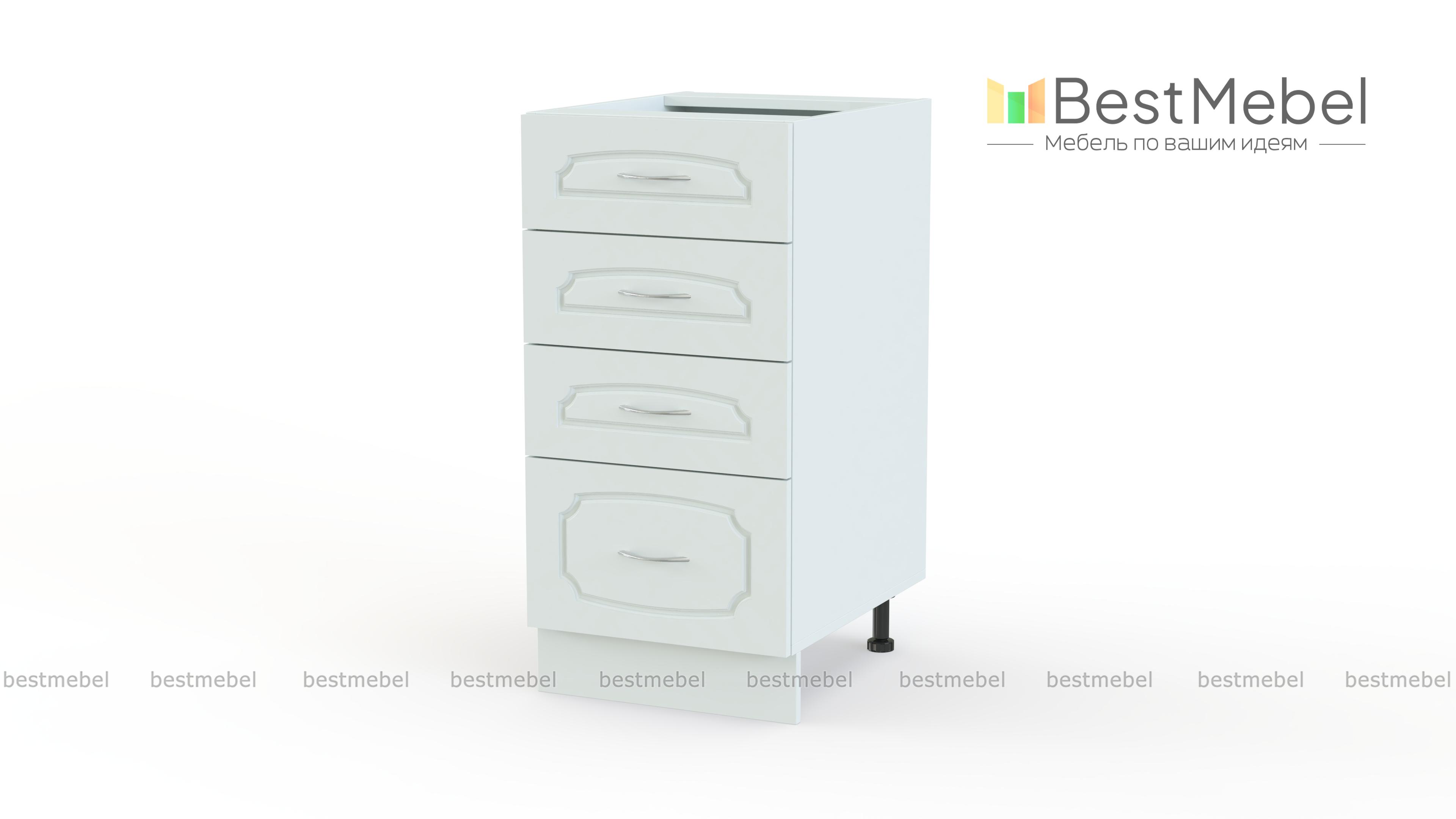 Эмилия шкаф напольный с 4-мя ящиками BMS – узкая модель, предназначенная для хранения разнообразных кухонных мелочей. Шкаф оборудован одним большим и тремя малыми выдвижными ящиками и позволит компактно разместить все необходимое для готовки. Элегантные фрезерованные фасады с ручками под серебро будут гармонично смотреться среди прочих модулей популярной классической серии. Купить Эмилия шкаф напольный с 4-мя ящиками BMS по демократичной цене приглашаем в наш интернет-магазин.