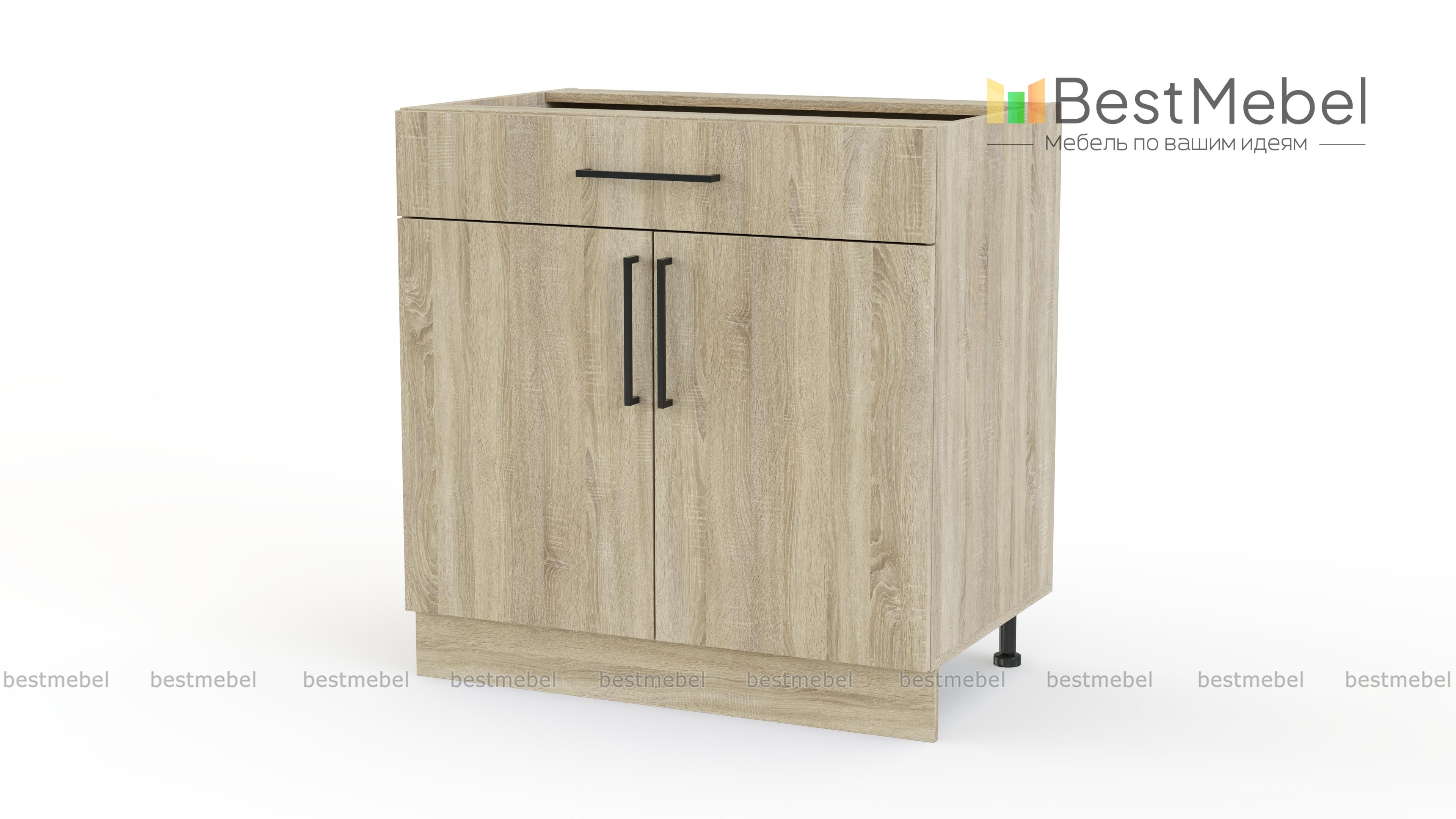 Шкаф нижний с ящиком Лайт BMS поможет разместить под рукой столовые приборы и кухонные мелочи, а для посуды и продуктов предусмотрено распашное отделение с полкой. Выполненный в нейтральном оттенке из прочной ламинированной плиты, шкаф надежен в эксплуатации и легко вписывается в современный интерьер. На фасады выдвижного ящика и двух дверей установлены стильные накладные скобы. Купить шкаф нижний с ящиком Лайт BMS вы сможете в нашем интернет-магазине с учетом необходимых размеров.