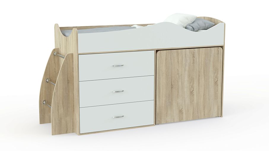 Детская кровать Карлсон Микро 2 BMS с выдвижной рабочей зоной поможет эффективно использовать пространство небольшой комнаты. На втором ярусе располагается комфортное спальное место, закрытое защитными бортиками, а первый занят встроенным комодом для удобного хранения детской одежды и постельных принадлежностей. Торцевая лестница с металлическими перекладинами позволит ребенку легко забраться в кровать. Купить детскую кровать Карлсон Микро 2 BMS вы сможете в нашем интернет-магазине, подобрав размеры и цветовое решение.