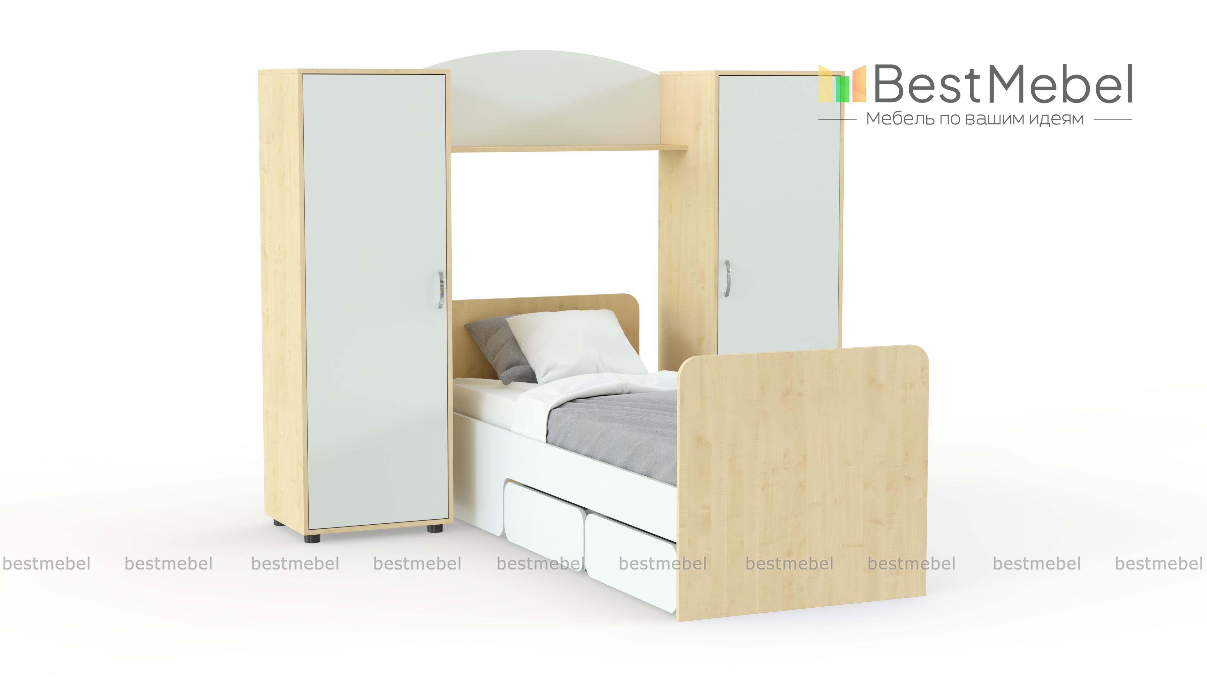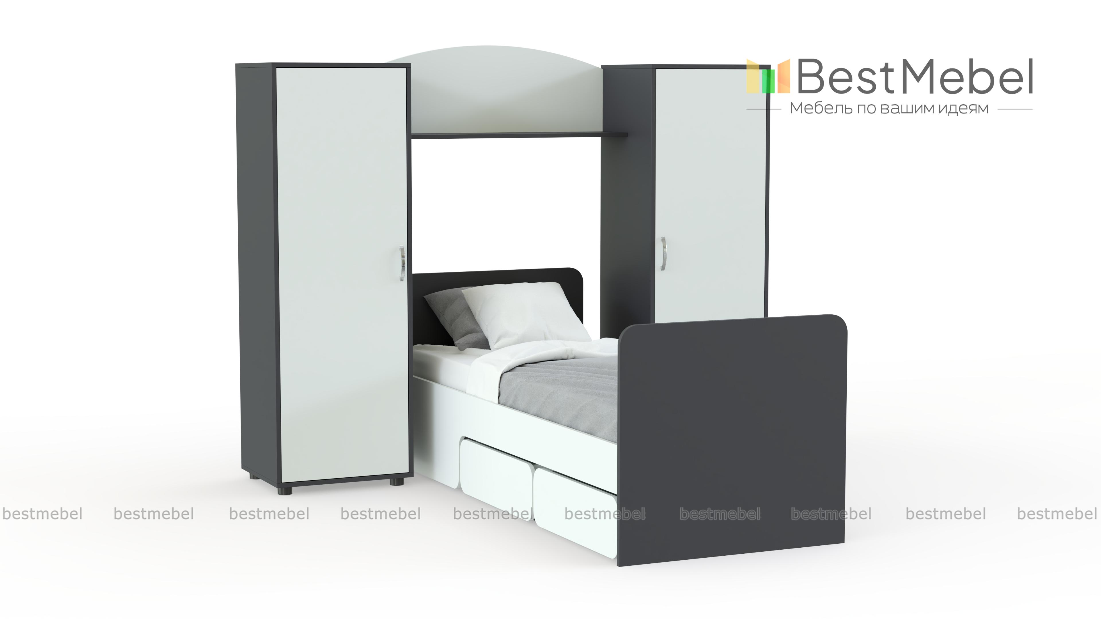 Детская кровать Миф 27 BMS – это простая и функциональная композиция для небольшой комнаты. Комплект включает в себя два симметрично расположенных пенала, оборудованных полками и штангой для одежды, кровать с парой выдвижных ящиков для постельных принадлежностей или игрушек в основании и межсекционную книжную полку. Лаконичный дизайн и разнообразие цветовых решений делают модель универсальной. Купить детскую кровать Миф 27 BMS вы всегда сможете в нашем интернет-магазине по доступной цене.