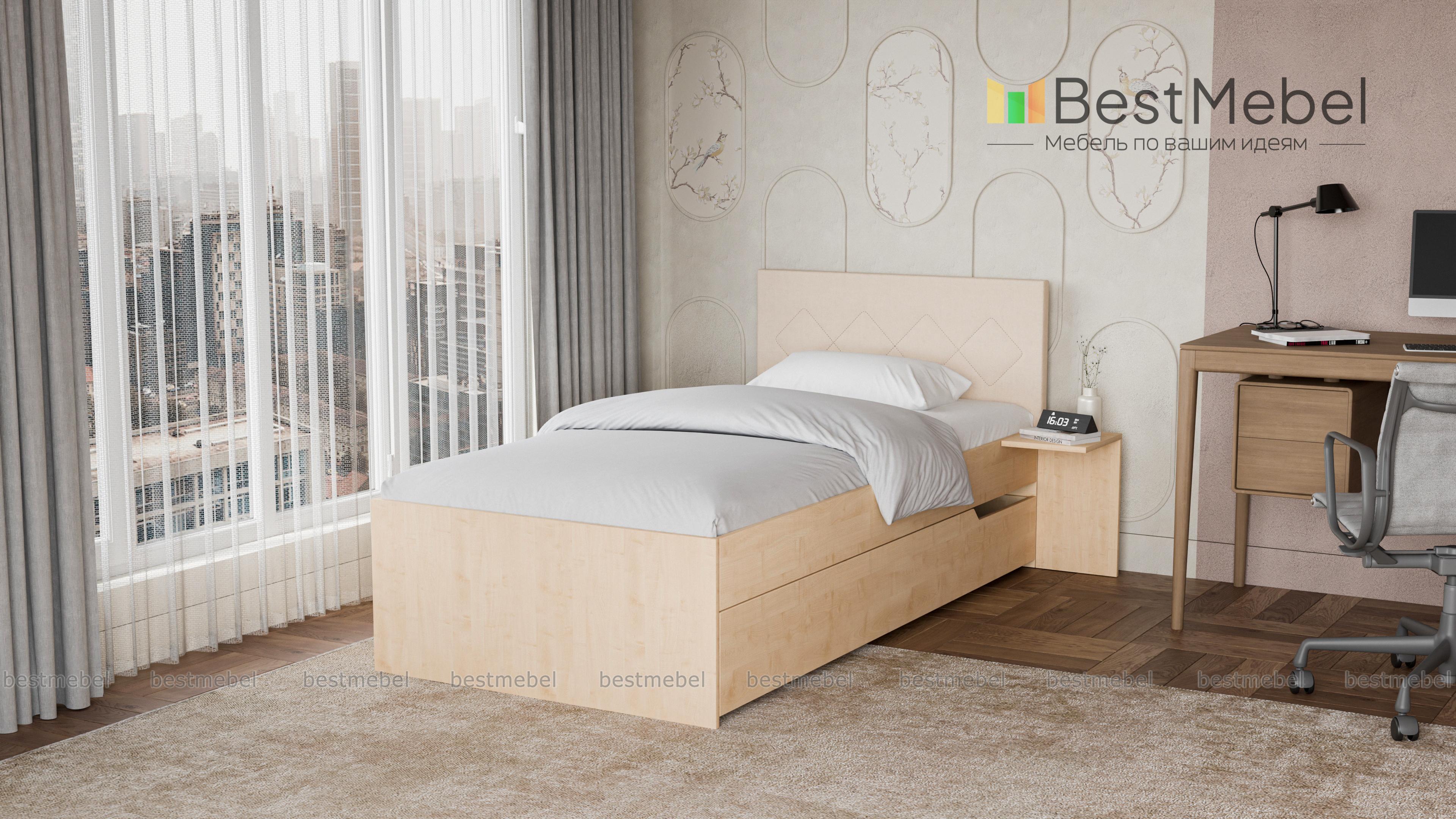 Кровать Магнолия 2 BMS – элегантная современная модель в нейтральном оттенке с контрастным изголовьем, которая дополнит интерьер молодежной комнаты. Лаконичная по форме, кровать оборудована просторным спальным местом без спинки в изножье, спинка изголовья в мягкой обивке декорирована прострочкой ромбами. Для хранения постельных принадлежностей предусмотрен широкий подкроватный ящик, а необходимые под рукой мелочи разместятся на приставном ночном столике. Купить кровать Магнолия 2 BMS вы сможете в нашем интернет-магазине с учетом необходимых параметров.