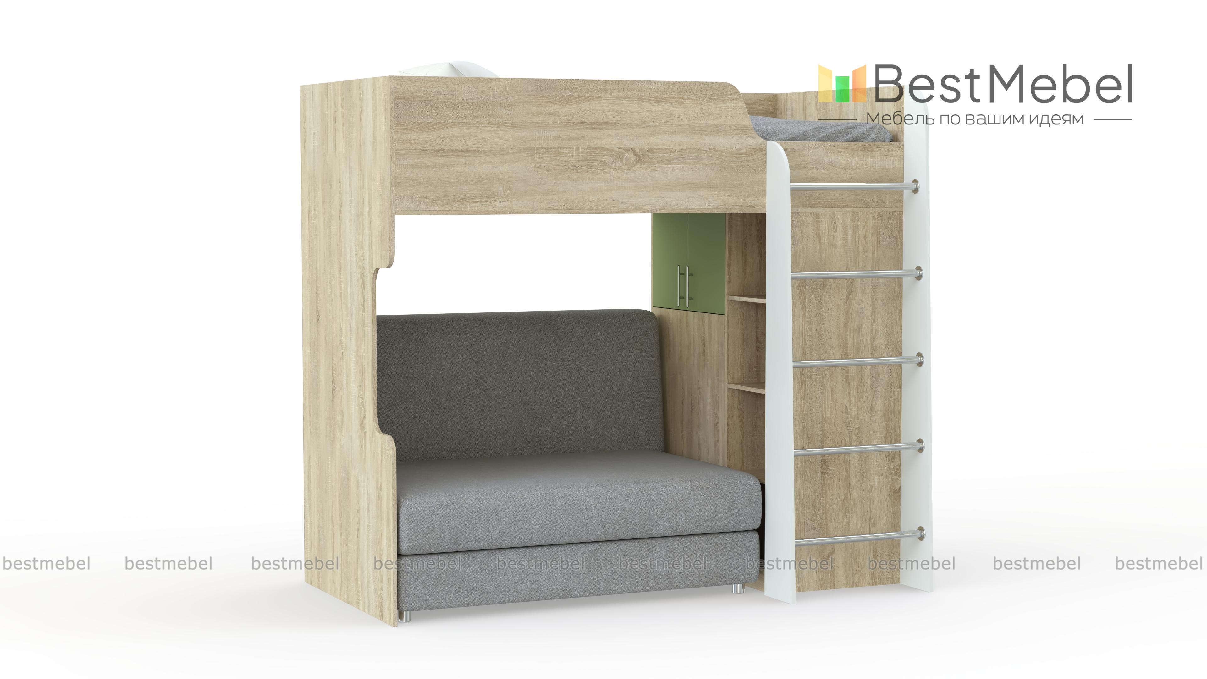 Кровать с диваном Карон 06 BMS оборудована всем самым необходимым для комфортного отдыха и хранения детских вещей. На втором ярусе располагается спальное место с ограничителем, а на первом – распашной шкаф для одежды, книжный стеллаж, лестница с металлическими трубными перекладинами и уютный диван. Несколько ярких цветовых решений на выбор помогут легко вписать модель в современный интерьер. Купить кровать с диваном Карон 06 BMS приглашаем в наш интернет-магазин по доступной цене.