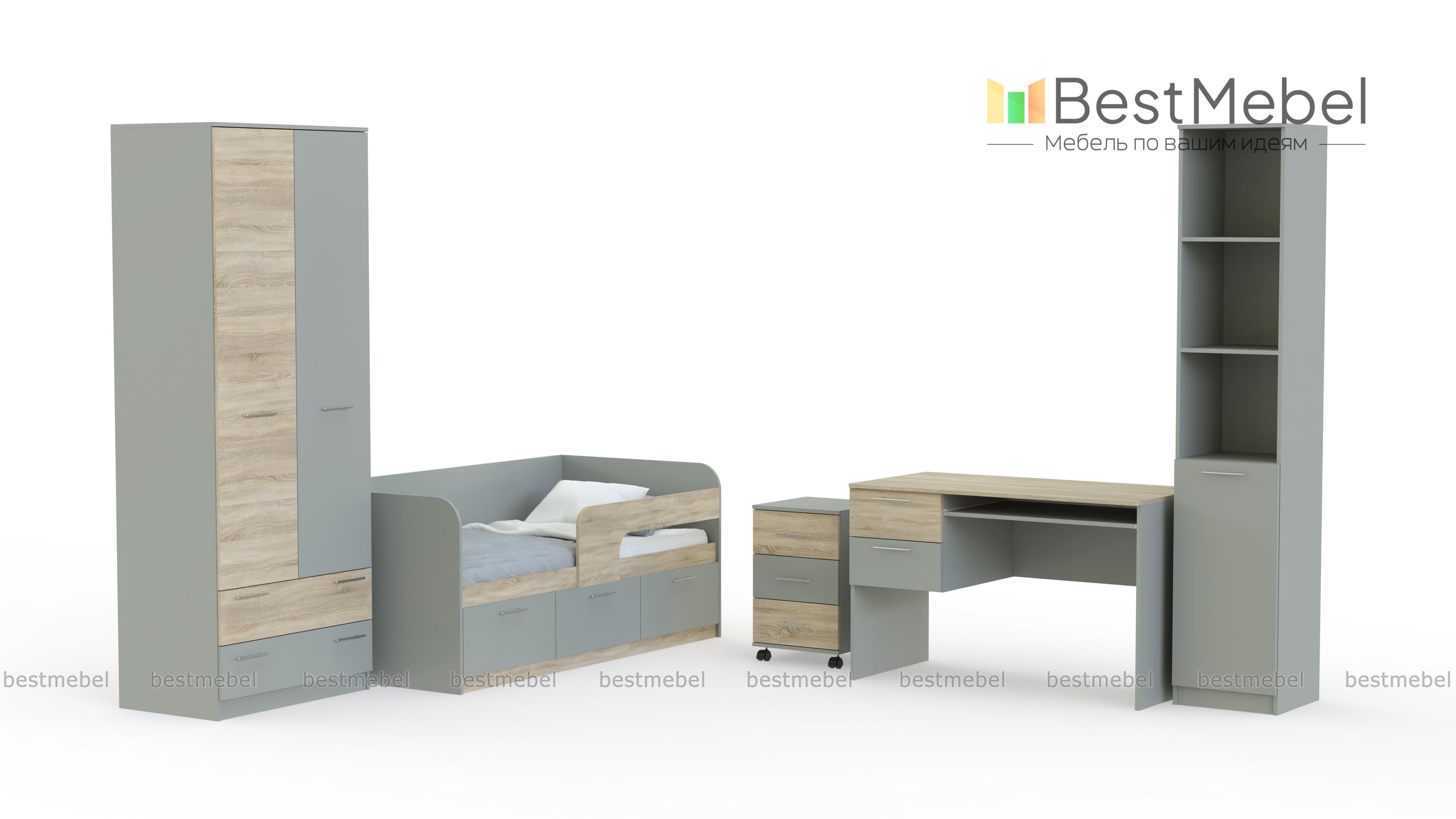 Мебель для детской комнаты Рико Модерн BMS поможет оборудовать светлую и комфортную комнату. Цветовое решение в светлых древесных тонах с нейтральными однотонными вставками оптимально для интерьера детской, а экологичные материалы просты в уходе и безопасны. В комплект входят двухдверный шкаф, кровать с бельевыми ящиками и защитными бортиками, практичная тумба на колесиках, компьютерный столик и высокий комбинированный стеллаж. Купить мебель для детской комнаты Рико Модерн BMS приглашаем в наш интернет-магазин.