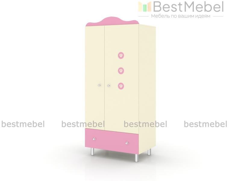 Шкаф Принцесса BMS выполнен в пастельных тонах с небольшими яркими акцентами. В распашном отделении со штангой можно аккуратно хранить одежду на вешалках, а для мелкого трикотажа использовать выдвижной ящик в основании. Шкаф с фигурно вырезанным карнизом располагается на высоких круглых ножках, которые визуально облегчают пространство и делают проще уборку в комнате. Купить шкаф Принцесса BMS вы сможете в нашем интернет-магазине, подобрав цвета и размеры.