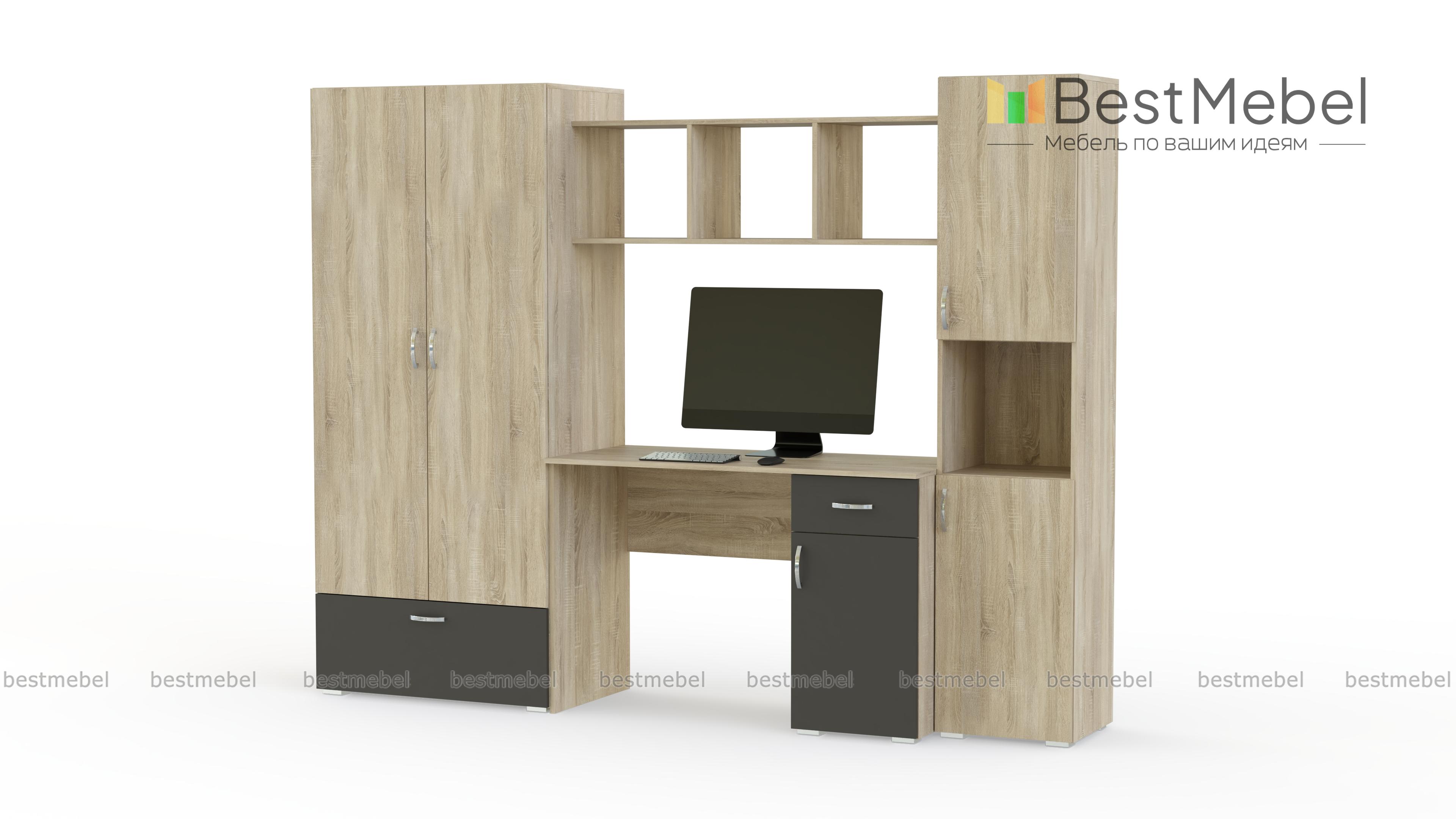 Легкий и изящный комплект, выполненный в нежных тонах и декорированный по фасадам шелковистым материалом, подойдет комнате юной леди. Простой и лаконичный по форме, он включает все необходимые для учебы, хранения гардероба, школьных принадлежностей и игрушек элементы. Элегантный письменный стол с тумбой, двухдверный одежный шкаф, открытые полки и вместительный пенал детской стенки Ариэль BMS вместе составляют гармоничную комбинацию и станут стильным акцентом современного дома.