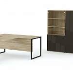 Кабинет руководителя Олимпия 11 BMS сочетает теплую атмосферу лофта с требованиями делового стиля. Модульный комплект для небольшого помещения или опен спейса состоит из переговорного стола с металлическим подстольем и двух шкафов: книжного со стеклом и платяного. Особенность дизайна кабинета - использование фактуры под дерево и металла, глянца и оригинальной фрезеровки. Купить кабинет руководителя Олимпия 11 BMS для создания комфортной рабочей зоны вы сможете на сайте нашего интернет-магазина.