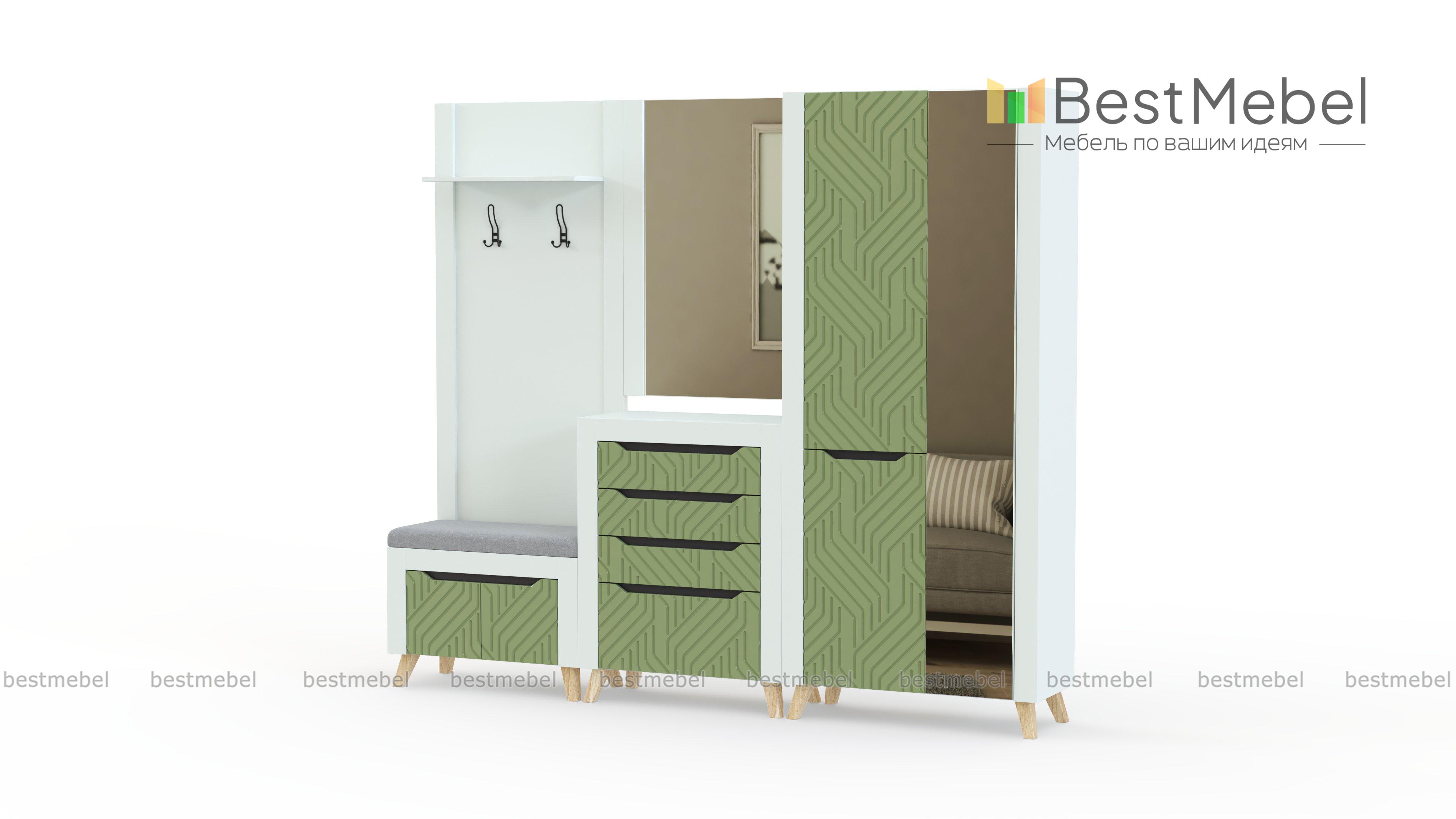 Прихожая Династия 20.3 BMS – стильное и функциональное решение для входной зоны. Нарочито простые модули с широкими накладками на фасадах не выглядят громоздко благодаря 3D фрезеровке и зеркалам, а модную геометричность дизайну придают трапециевидные ручки-вырезы. В комплект входят открытая вешалка, совмещенная с обувницей, распашной шкаф, комод и большое навесное зеркало. Купить прихожую Династия 20.3 BMS приглашаем в наш интернет-магазин с возможностью изготовления по индивидуальным размерам.