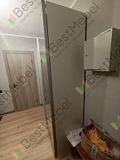 Заказ №1063577 (шкаф-купе Пакс Мехамн Pax Mehamn 9).Заказываем не впервый раз. Ранее прихожка была, шкаф в тот же цвет. Главное, что можно размер с точностью до мм заказать. Сам являешься соавтором проекта. Что касается конкретно этого шкафа, то мы заказали заднюю стенку из ДСП, т.к. собирать планировали стоя из-за нехватки места. Задняя стенка из основного материала придаëт дополнительную жесткость и позволяет сохранить прямой угол в любом случае. Дополнительно через заднюю стенку можно притянуть шкаф к стене. Если нет опыта, заказывайте сборщиков.