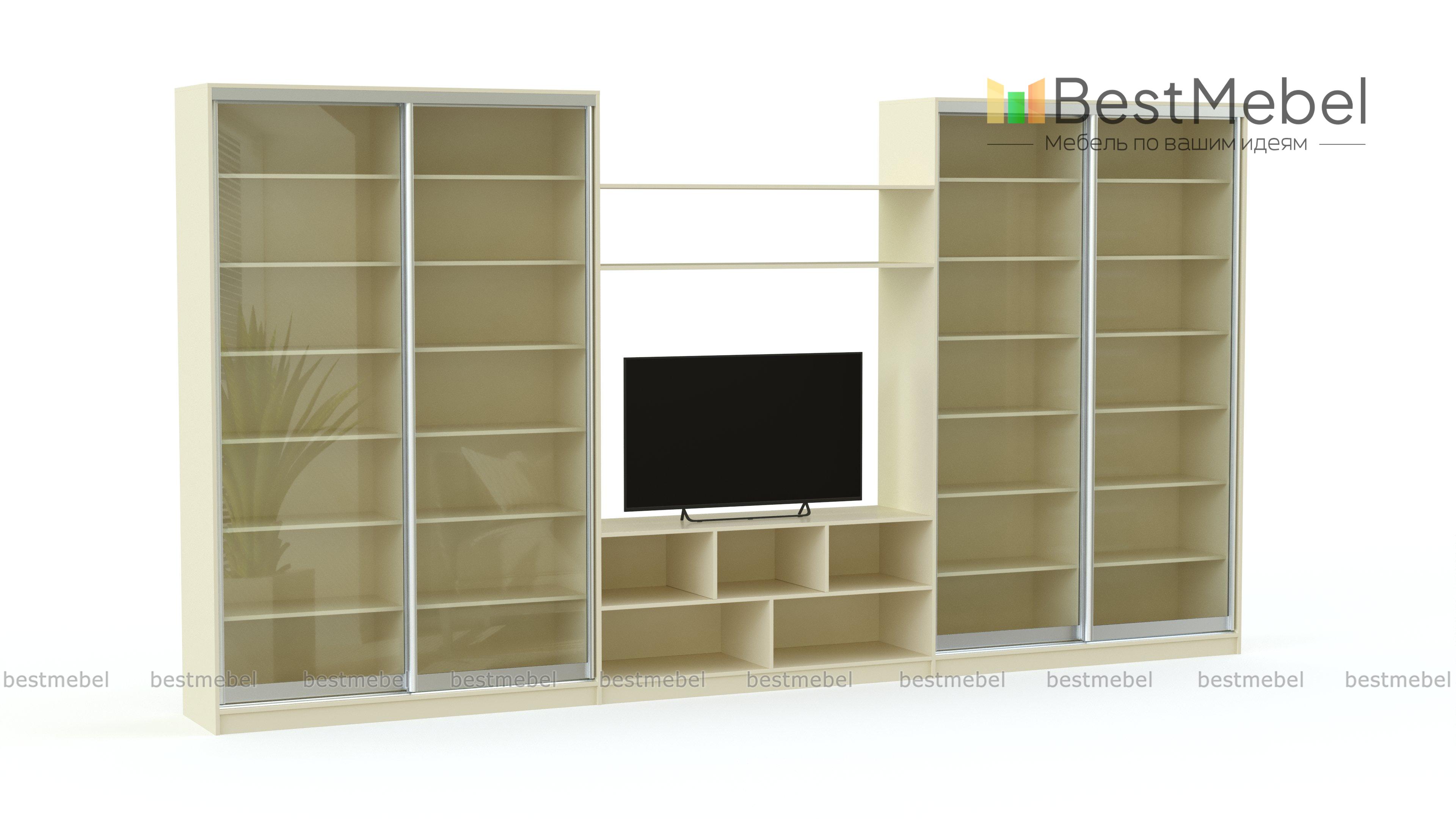 Шкаф-купе под телевизор S-081 BMS – отличный выбор для создания домашней библиотеки. Книги, расставленные на многочисленных полках, останутся в полной сохранности за стеклянными раздвижными дверями, прозрачными сверху донизу. За ними легко отыщется нужный экземпляр. На открытых полках, являющихся продолжением шкафа, можно разложить периодические печатные издания, расставить красивые сувениры, милые сердцу семейные фотографии. В специально предусмотренной нише есть место для установки плазмы любой диагонали. Купить недорогой качественно изготовленный шкаф-купе S-081 BMS можно на нашем сайте, предварительно рассчитав необходимые габаритные размеры для идеального вписывания его в ваше помещение. Цвет изделия также подбирается в индивидуальном порядке.