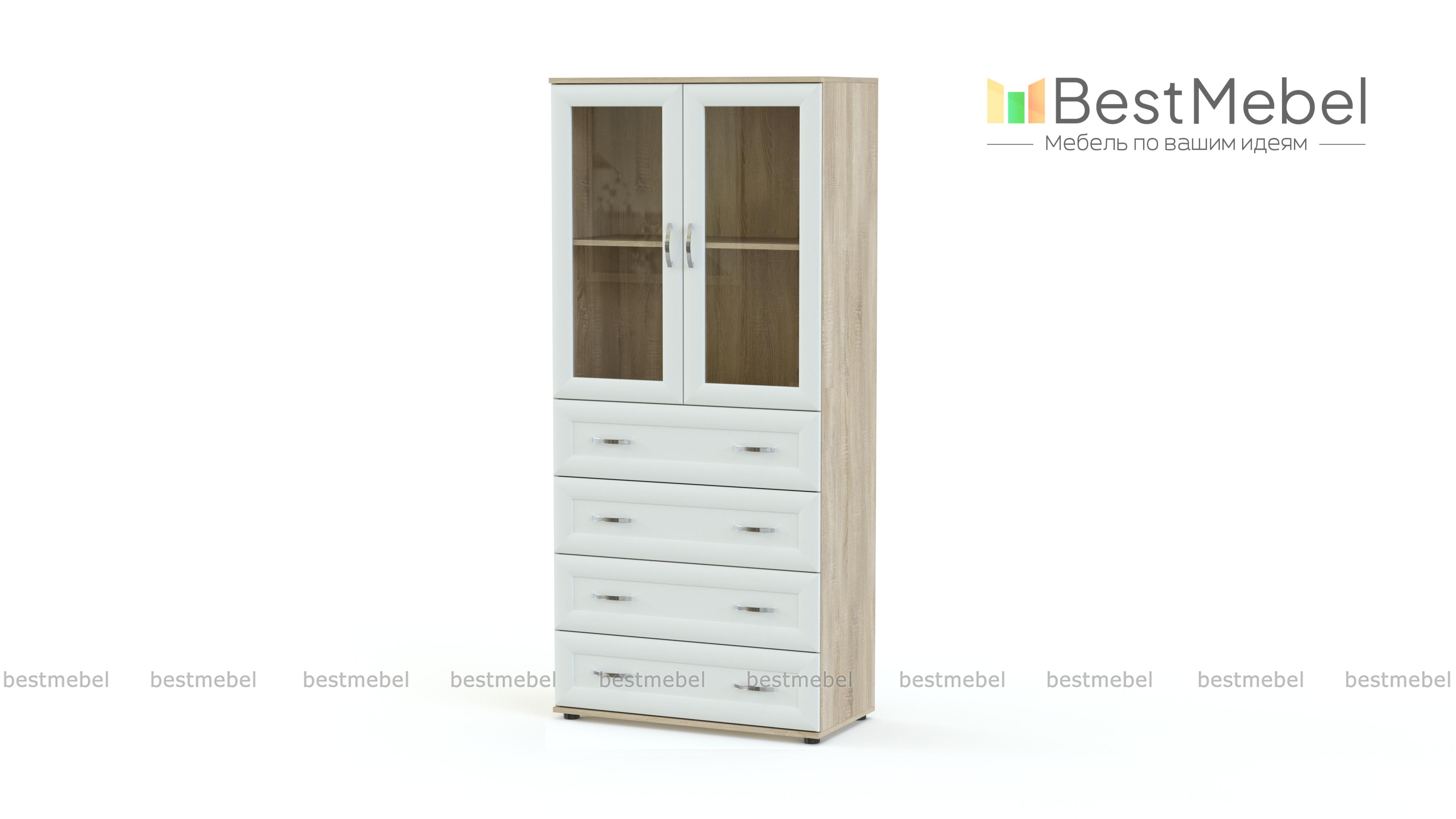 Шкаф для книг Пигмалион 2 BMS отличается вместительностью и функциональностью. Комбинированная модель представляет собой сочетание комода с четырьмя выдвижными ящиками и застекленного отделения с полкой. Продуманная система хранения позволит аккуратно разместить книги и многое другое. Рамочные фасады и нейтральные древесные расцветки органично впишутся в гостиные и кабинеты классического стиля. Купить шкаф для книг Пигмалион 2 BMS недорого приглашаем в наш интернет-магазин.