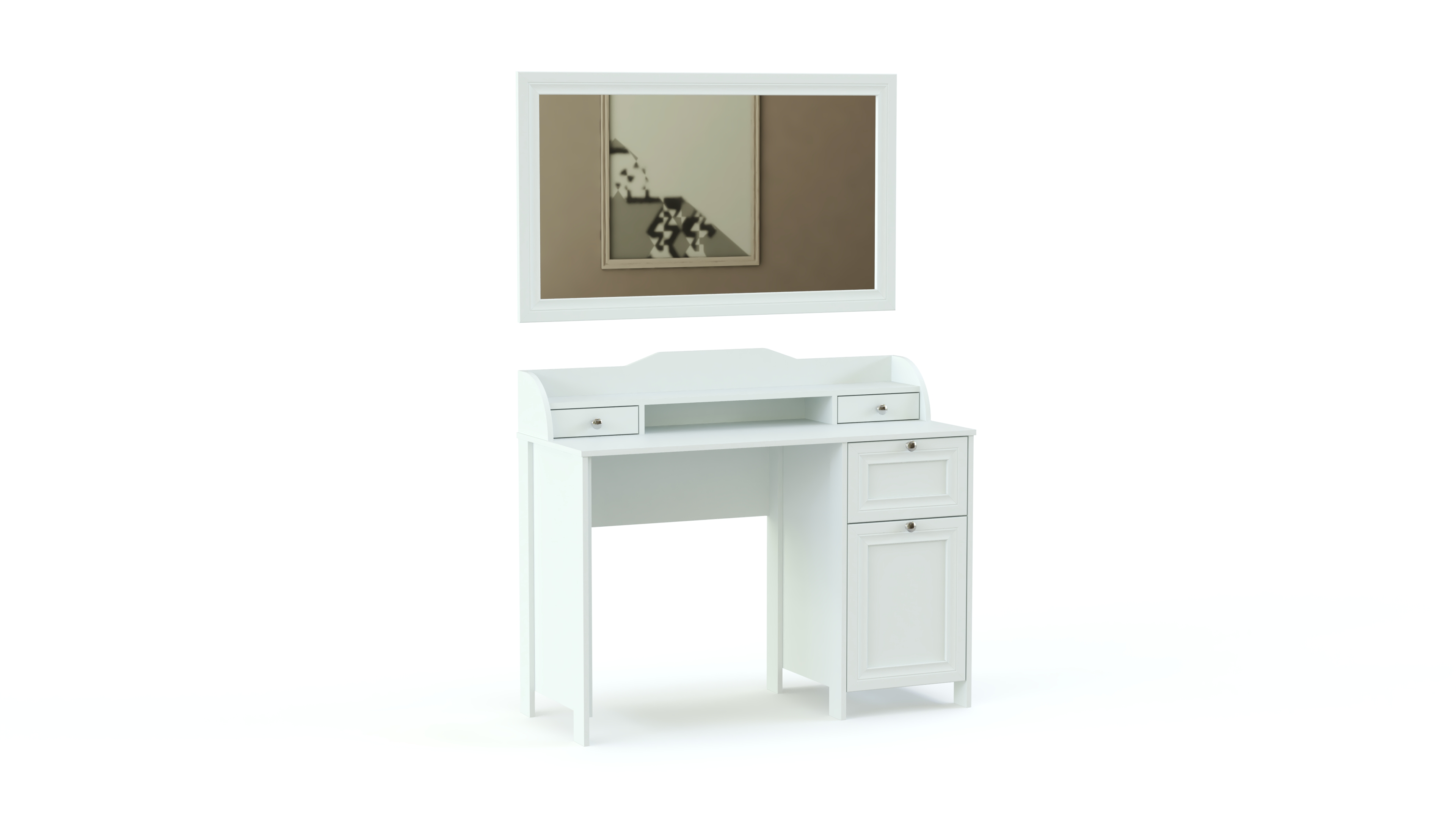 Элегантный классический комплект не выйдет из моды и прослужит вам долгие годы. Спальня Соната BMS состоит из нескольких модулей, которые удобно компоновать по своему вкусу. Это вместительный четырехдверный шкаф с зеркалами в полный рост, комод для белья и мелочей, туалетный столик с навесным зеркалом, кровать и прикроватные тумбы. Мебель выполнена в модных натуральных белых оттенках, а особенное изящество и легкость гарнитуру придают высокие ножки и металлическая фурнитура.