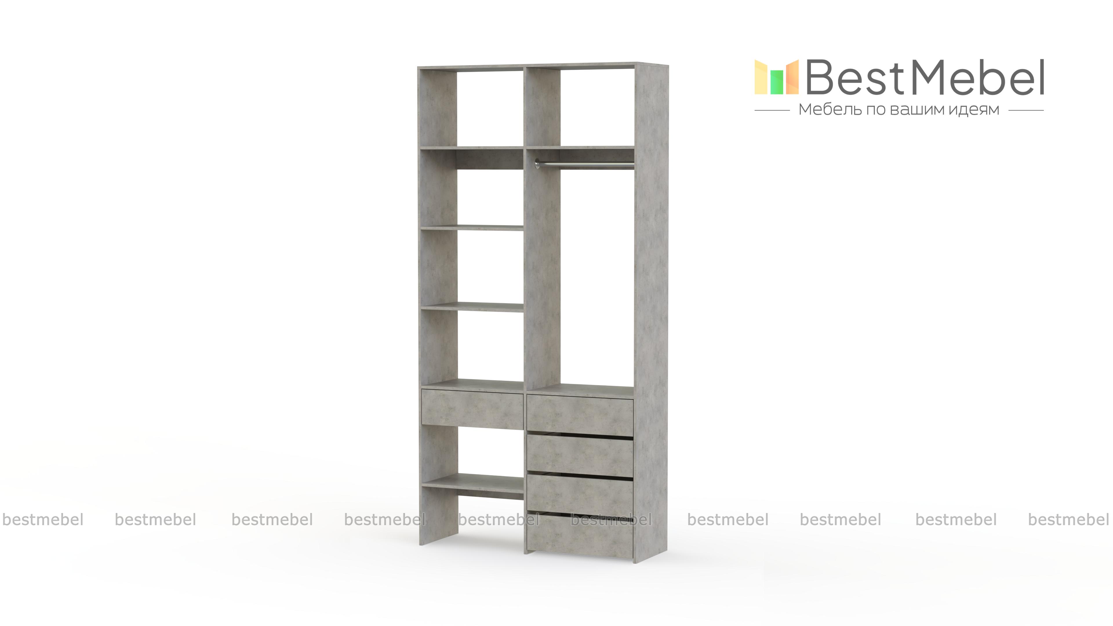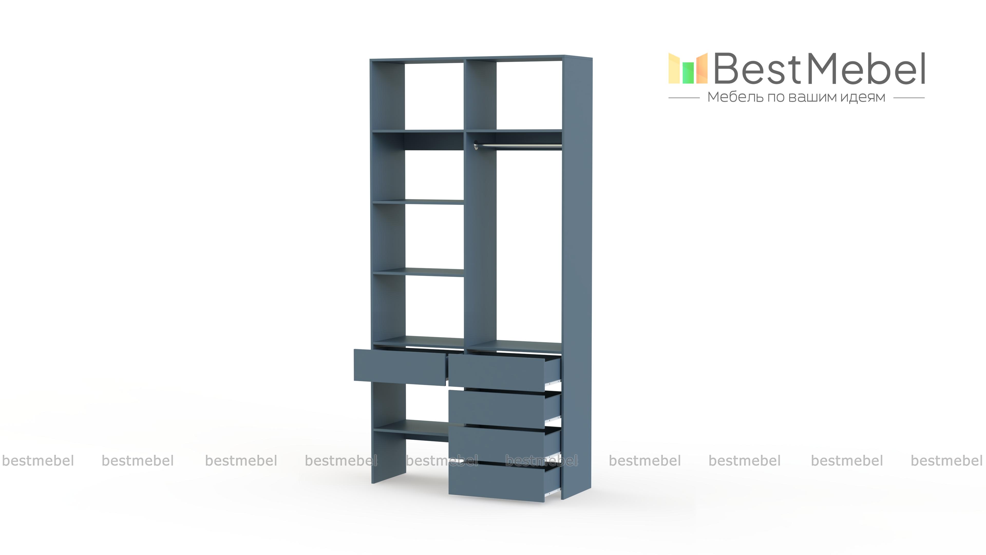 Стеллаж для одежды Мирта 1 BMS подходит для обустройства гардеробной, спальни или торгового зала. Изготовленная из высококачественной ламинированной плиты, конструкция обладает прочностью и долговечностью. Открытые полки дополнены штангой и пятью выдвижными ящиками, позволяя разместить одежду на вешалках и в сложенном виде, обувь и аксессуары. Купить стеллаж для одежды Мирта 1 BMS в необходимом размере и цвете вы сможете на сайте нашего интернет-магазина.