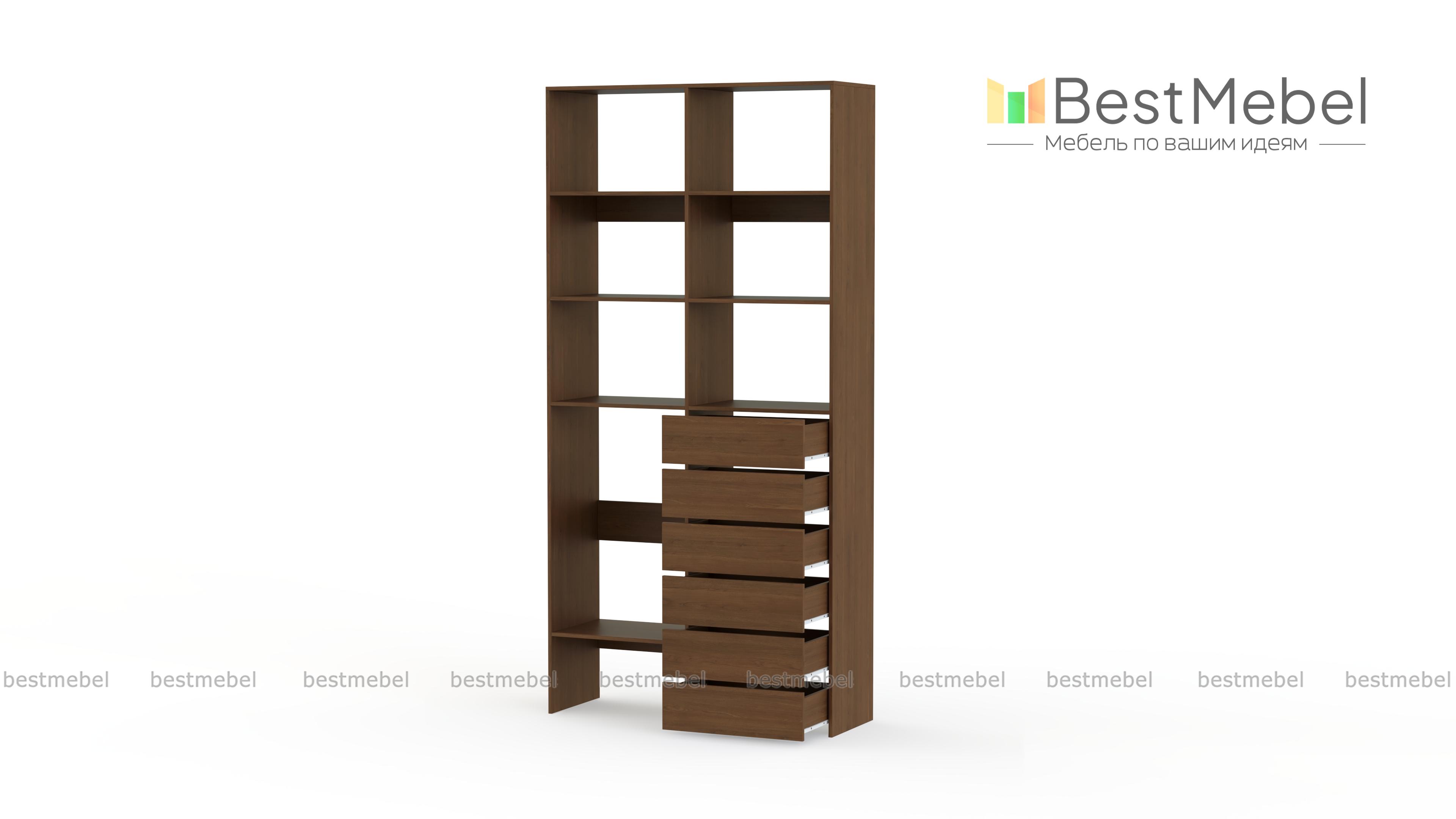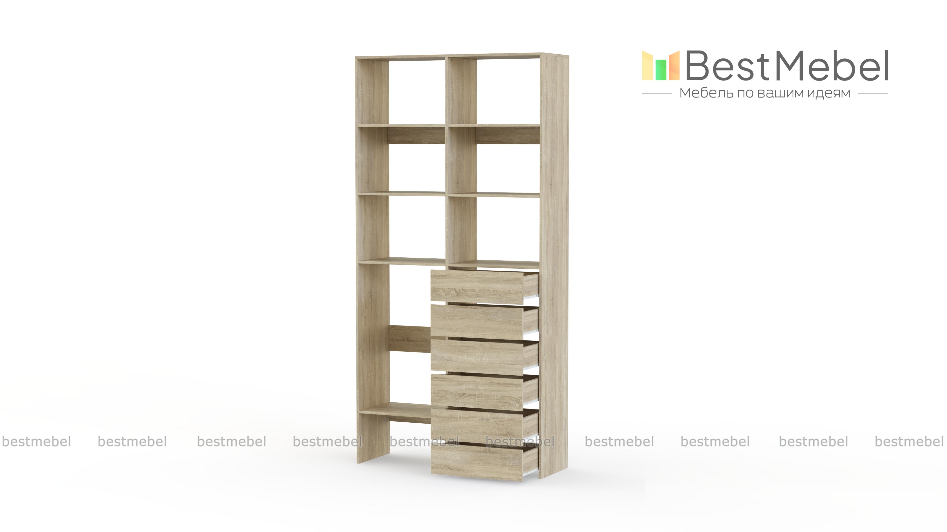 Стеллаж для одежды Мирта 39 BMS представляет собой готовое решение для вашей прихожей или гардеробной комнаты. Расположенные на разной высоте полки и целых шесть выдвижных ящиков позволят вам разместить как мелкие, так и габаритные вещи: одежду, обувные коробки и всевозможные аксессуары. Для изготовления стеллажа использован современный экологичный материал — ламинированная ДСП. Купить стеллаж для одежды Мирта 39 BMS в оттенках нашего каталога на выбор вы сможете на сайте интернет-магазина.