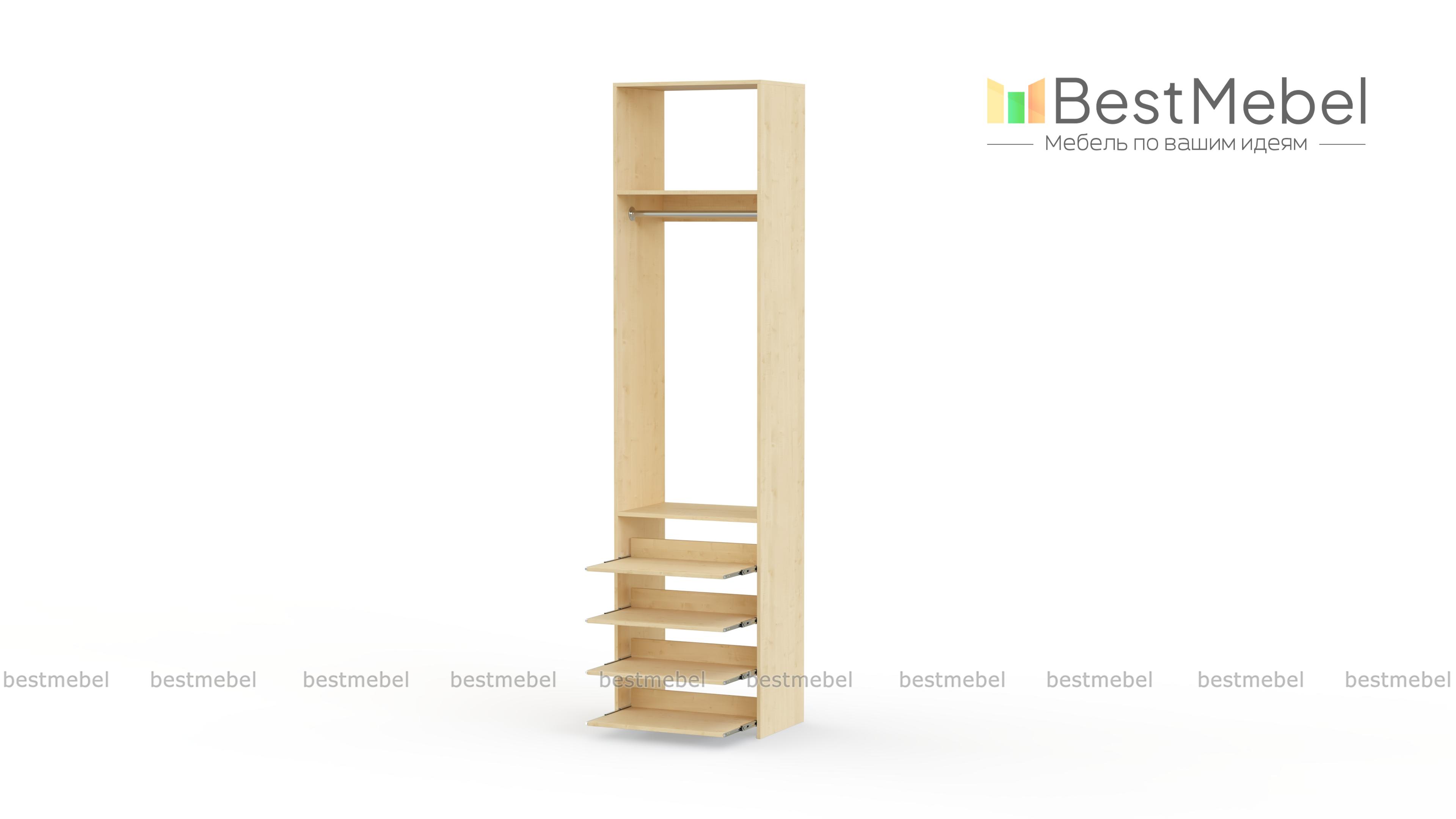 Стеллаж для одежды Мирта 75 BMS экономит пространство, что особенно важно для небольших помещений. Особенность базовой комплектации с полками и штангой — наличие четырех удобных выдвижных панелей снизу. Для изготовления стеллажа использована качественная ламинированная ДСП, которая гарантирует конструкции прочность и долговечность. Купить стеллаж для одежды Мирта 75 BMS вы сможете на сайте нашего интернет-магазина в любом размере и оттенке на выбор.