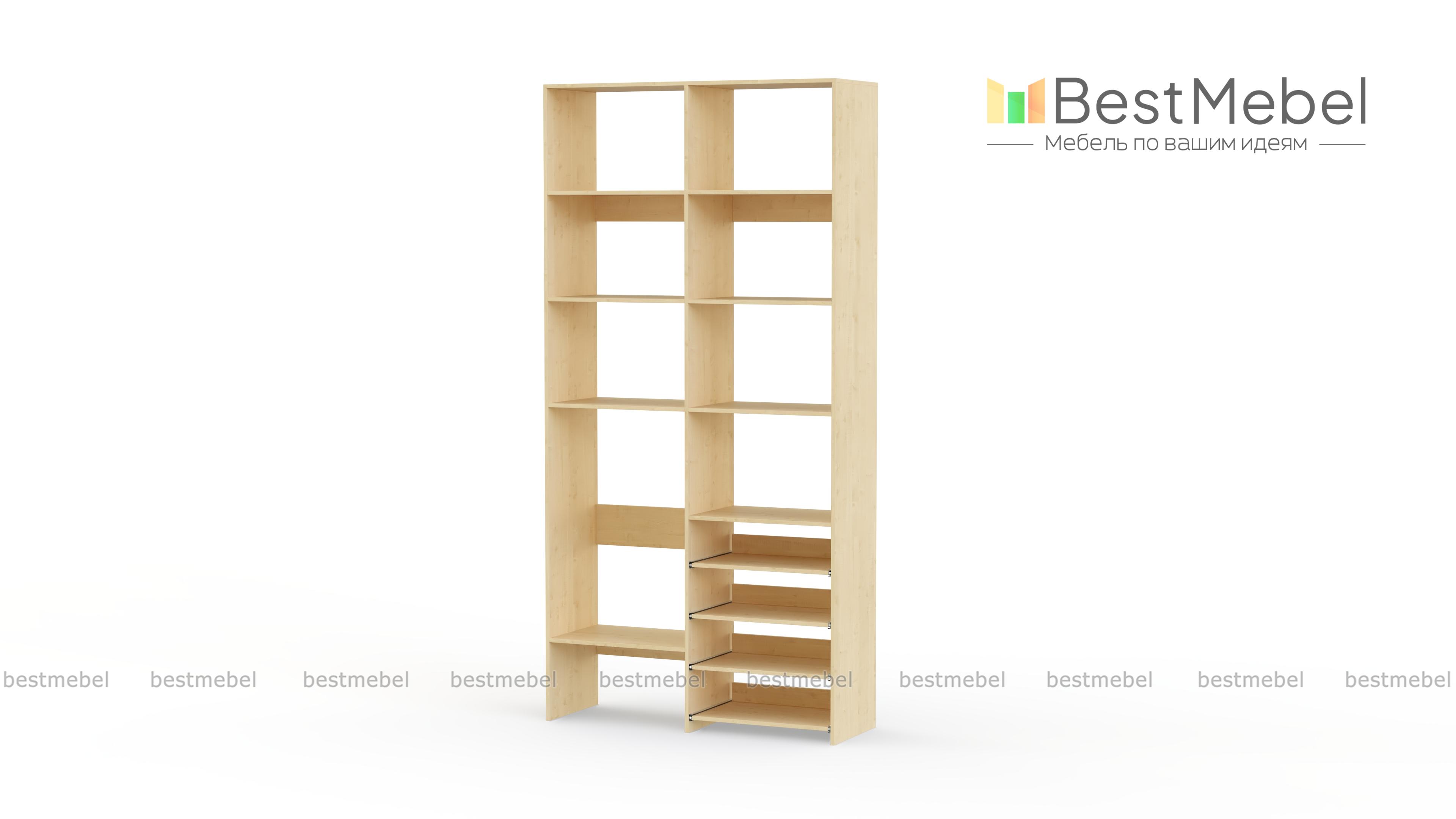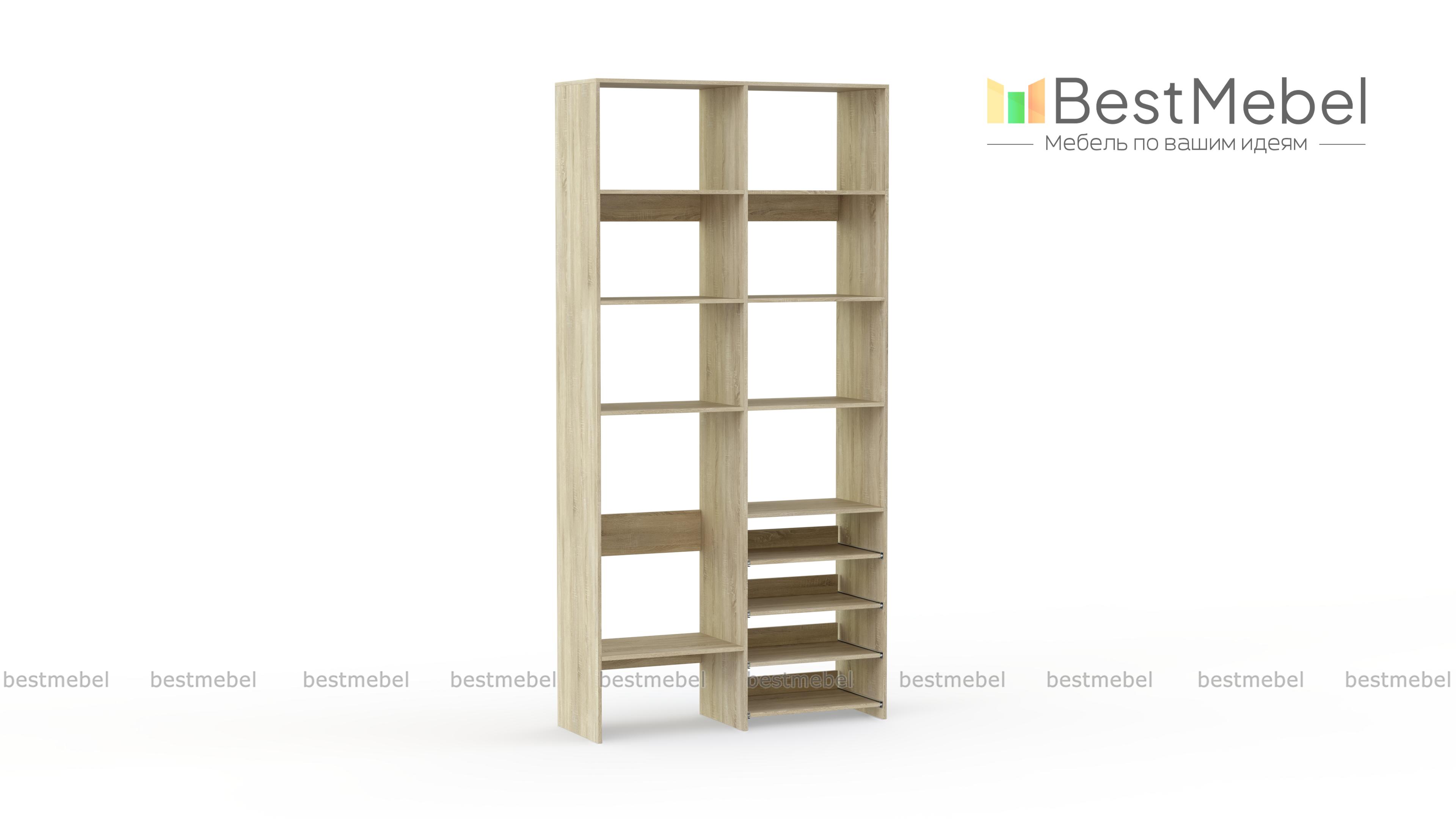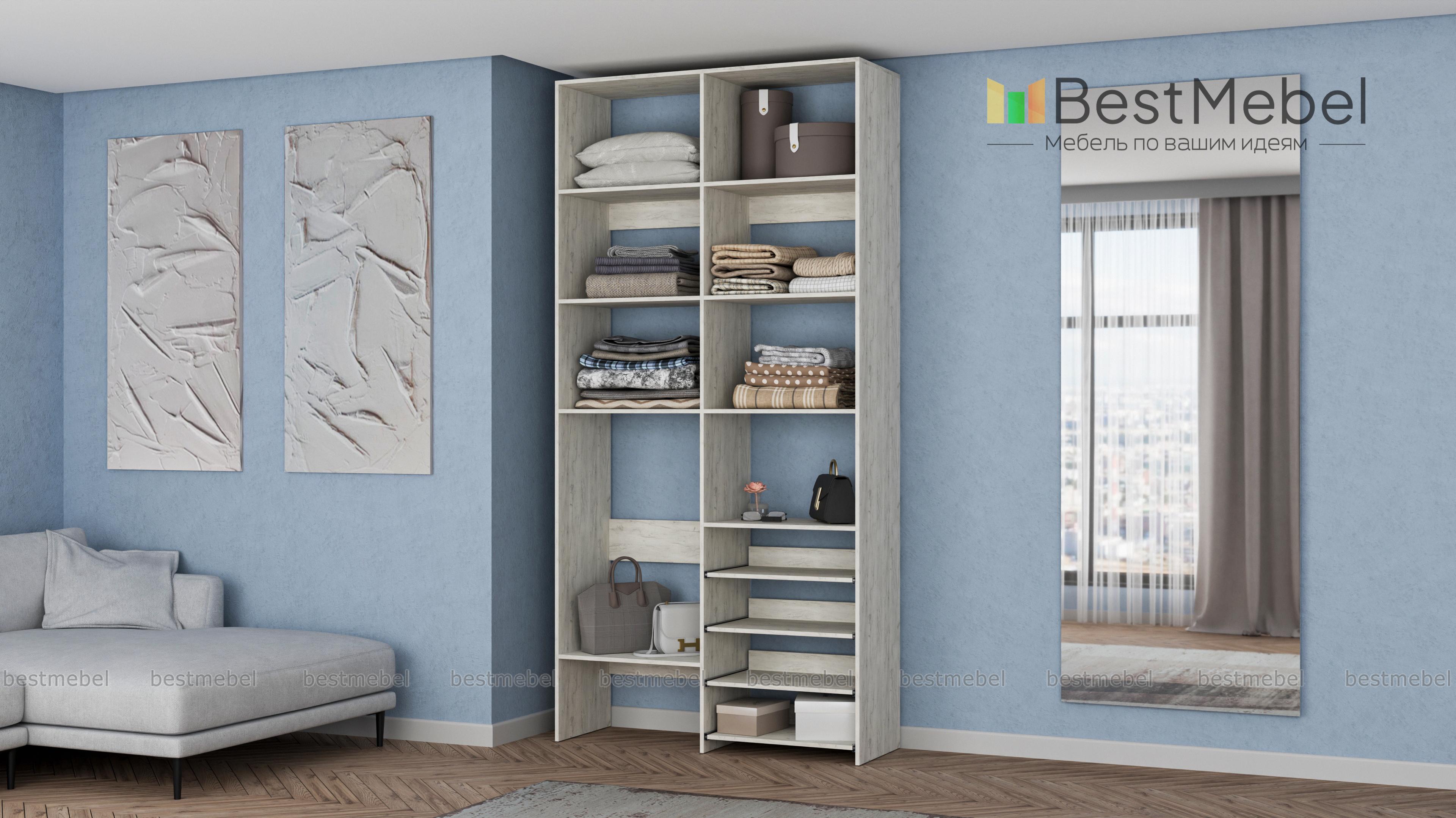Стеллаж для одежды Мирта 80 BMS подойдет для комнат малого метража, где важна компактность. Модификация с открытыми секциями разных размеров и полками на направляющих оптимальна, если нужно хранить сложенную одежду, обувь, коробки и корзины с вещами. Базовый природный оттенок стеллажа и простая форма отлично смотрятся в любом современном интерьере. Купить стеллаж для одежды Мирта 80 BMS в необходимом размере и цвете вы сможете на сайте нашего интернет-магазина.