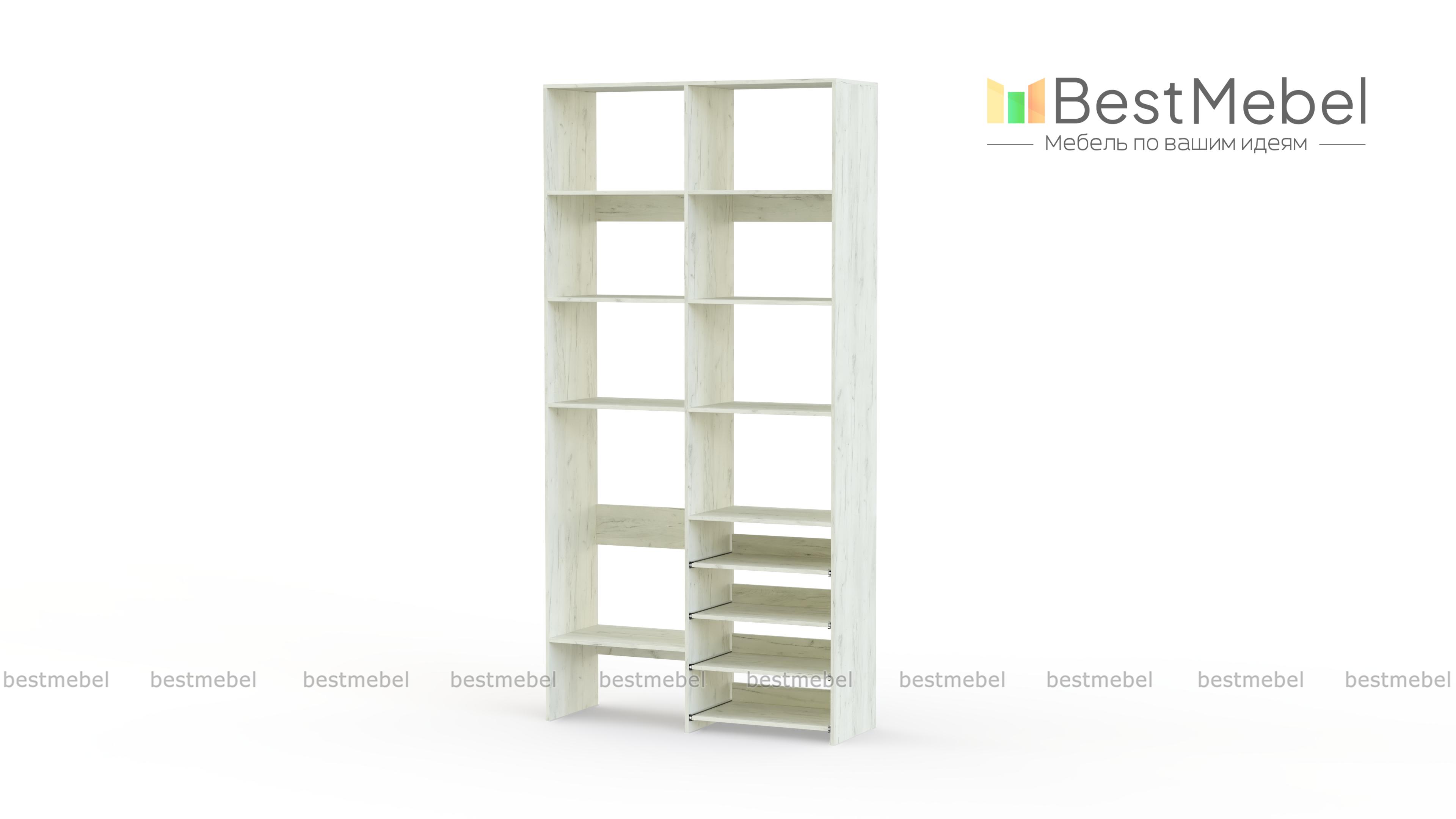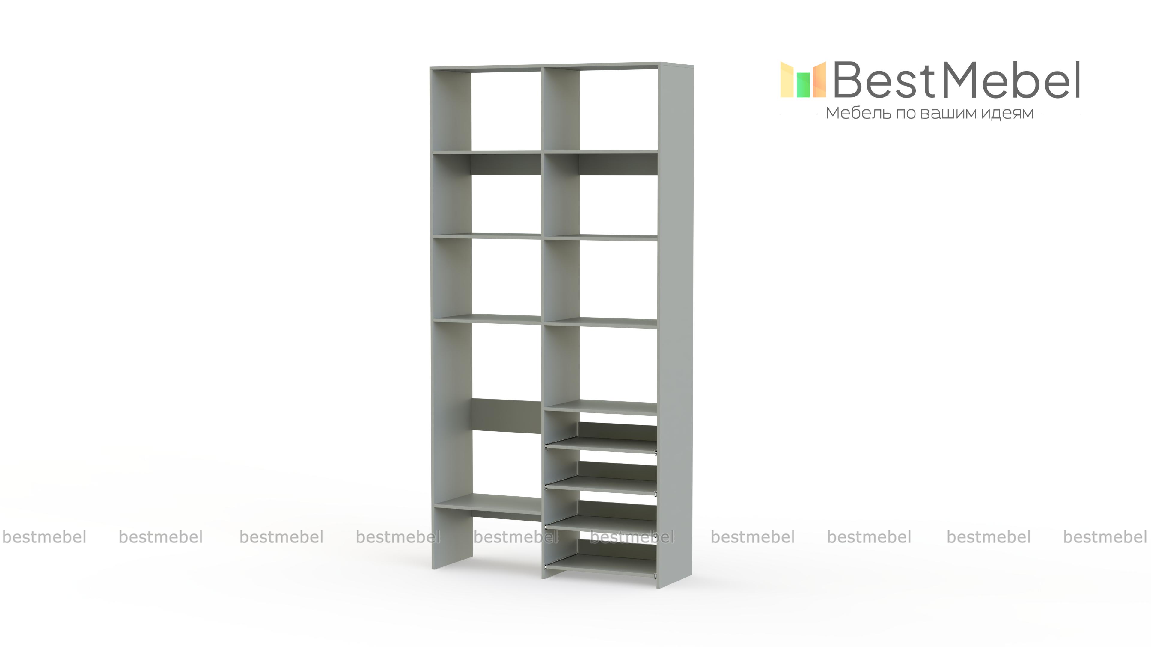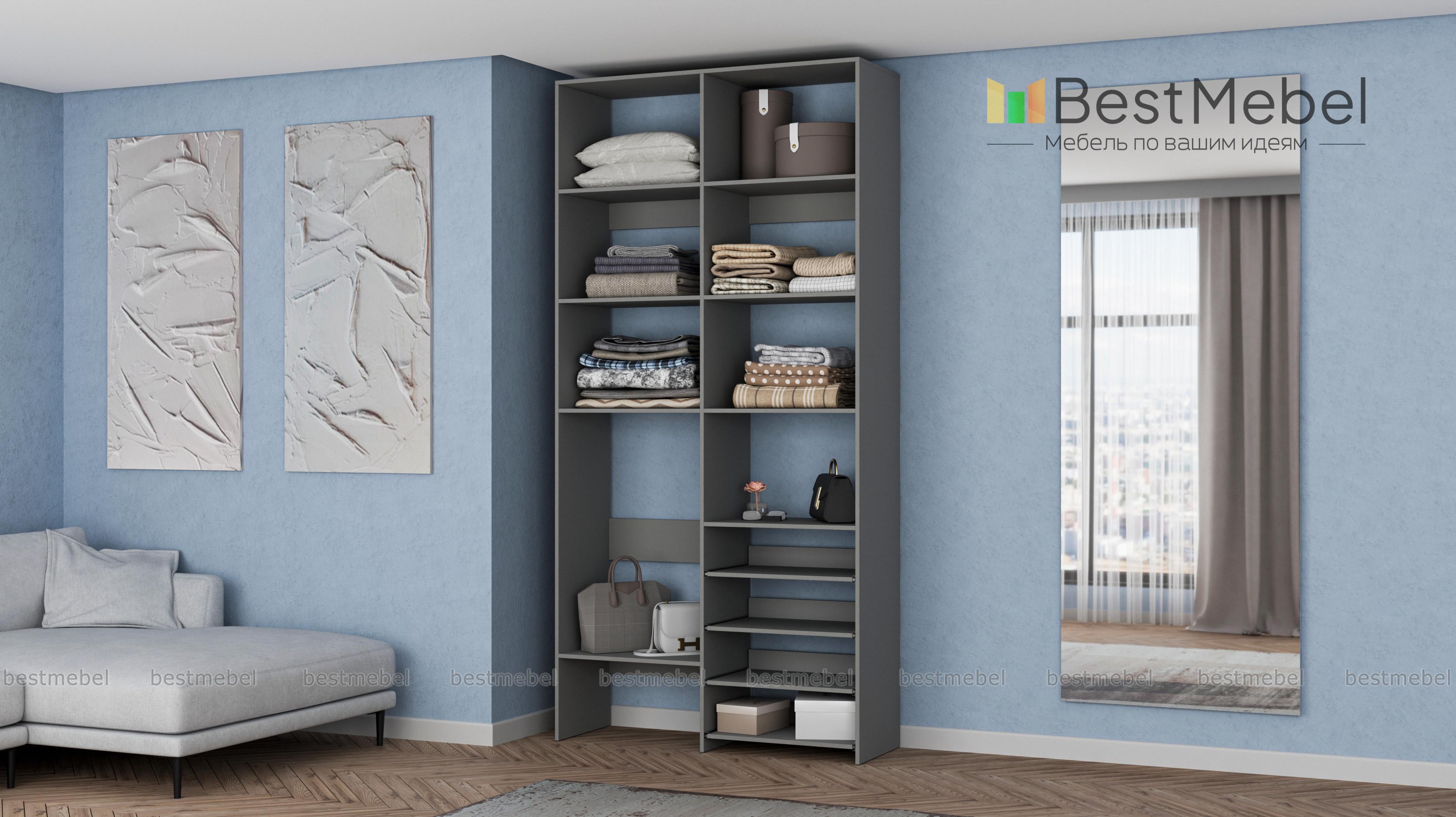 Стеллаж для одежды Мирта 80 BMS подойдет для комнат малого метража, где важна компактность. Модификация с открытыми секциями разных размеров и полками на направляющих оптимальна, если нужно хранить сложенную одежду, обувь, коробки и корзины с вещами. Базовый природный оттенок стеллажа и простая форма отлично смотрятся в любом современном интерьере. Купить стеллаж для одежды Мирта 80 BMS в необходимом размере и цвете вы сможете на сайте нашего интернет-магазина.