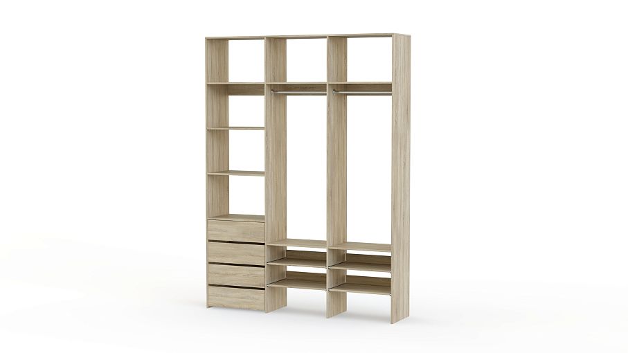 Стеллаж для одежды Мирта 99 BMS помогает сохранить порядок в вашей прихожей или гардеробной. Открытая конструкция укомплектована двумя одежными штангами, бельевыми и выдвижными полками, а также четырьмя ящиками для мелочей. Материал изготовления — ламинированная плита древесного оттенка, которая выдерживает большие нагрузки. Купить стеллаж для одежды Мирта 99 BMS в необходимом вам размере и цвете вы сможете купить на сайте нашего интернет-магазина.