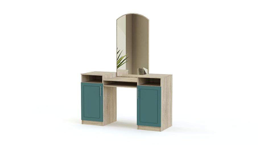 Отличное дополнение к спальному гарнитуру, которое создано красивым, для того чтобы Вы сами смогли стать немного красивее. Купить стол туалетный Джорджия СБ-1144 BMS стоит в спальню любого размера, для того чтобы иметь личное пространство для косметических процедур. В этом поможет великолепное просторное зеркало, которое располагается в центральной части над эргономичной столешницей. По бокам располагается пара шкафчиков с закрытыми полками. Распашные дверцы оборудованы привлекательными ручками, над дверцами располагаются открытые полки.