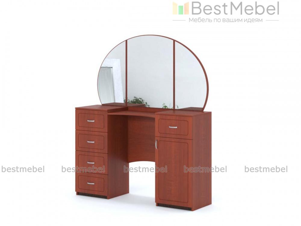 Стол туалетный Иво-5 BMS – элегантная модель для интерьера в классическом стиле. Столик оборудован эргономично вырезанной столешницей, большим овальным зеркалом и двумя тумбами – с выдвижными ящиками и распашным отделением для хранения разнообразных мелочей. Выполненные в насыщенных теплых тонах, фасады декорированы неброской фрезеровкой. Купить стол туалетный Иво-5 BMS и дополнить спальный гарнитур практичным предметом вам поможет наш интернет-магазин.