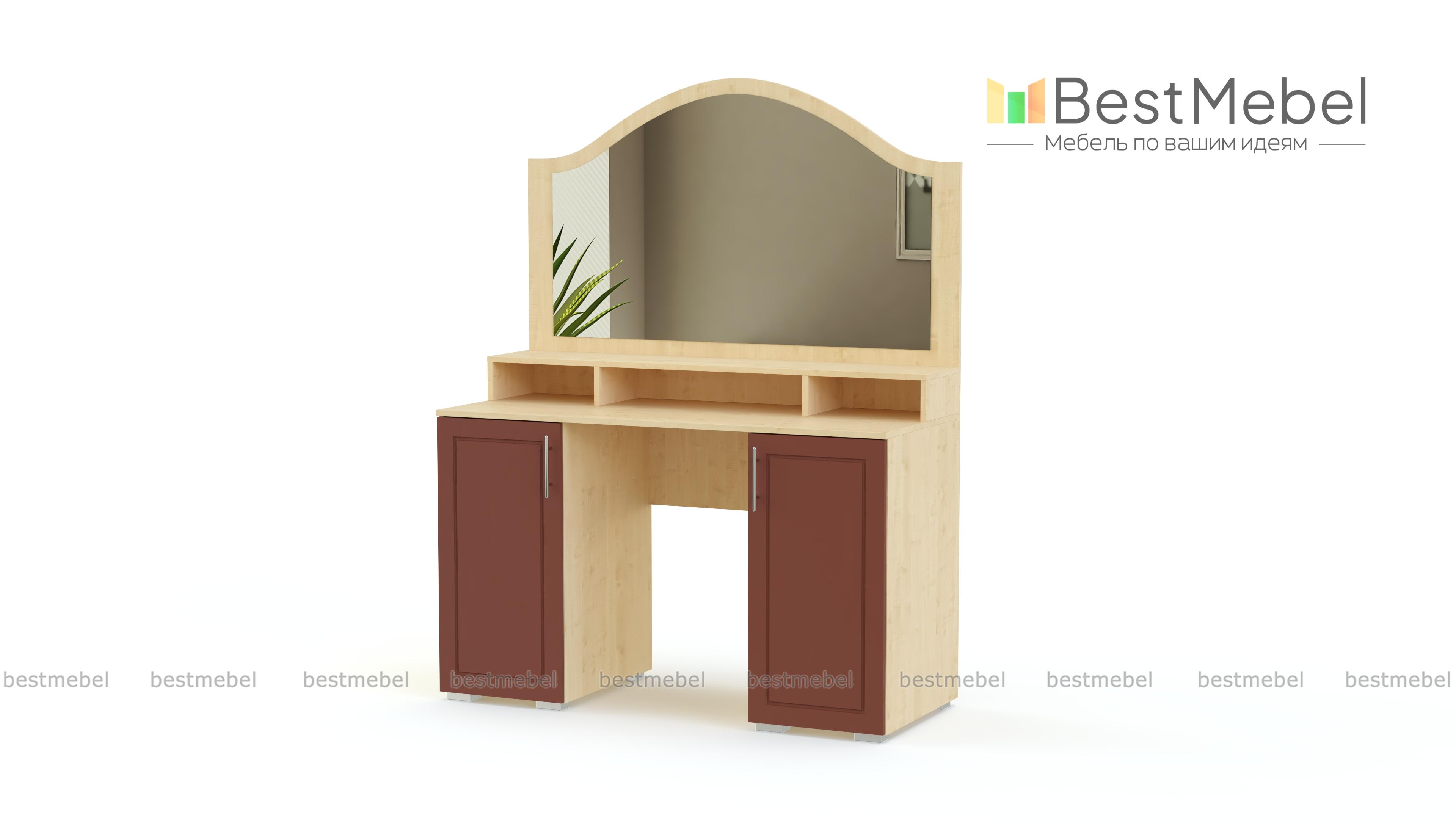 Туалетный столик Ханна BMS станет частью по-домашнему уютного спального интерьера, объединившего классику и современные тенденции. Изящный столик оборудован широкой столешницей, дополненной двумя распашными тумбами и надстройкой с открытыми полочками для мелочей, и панелью с зеркалом. Выполненная в серых тонах и декорированная по фасадам нежных оттенков фрезеровкой и ручками, модель смотрится легкой и украсит обстановку. Купить туалетный столик Ханна BMS, подобрав цветовое решение, приглашаем в наш интернет-магазин.