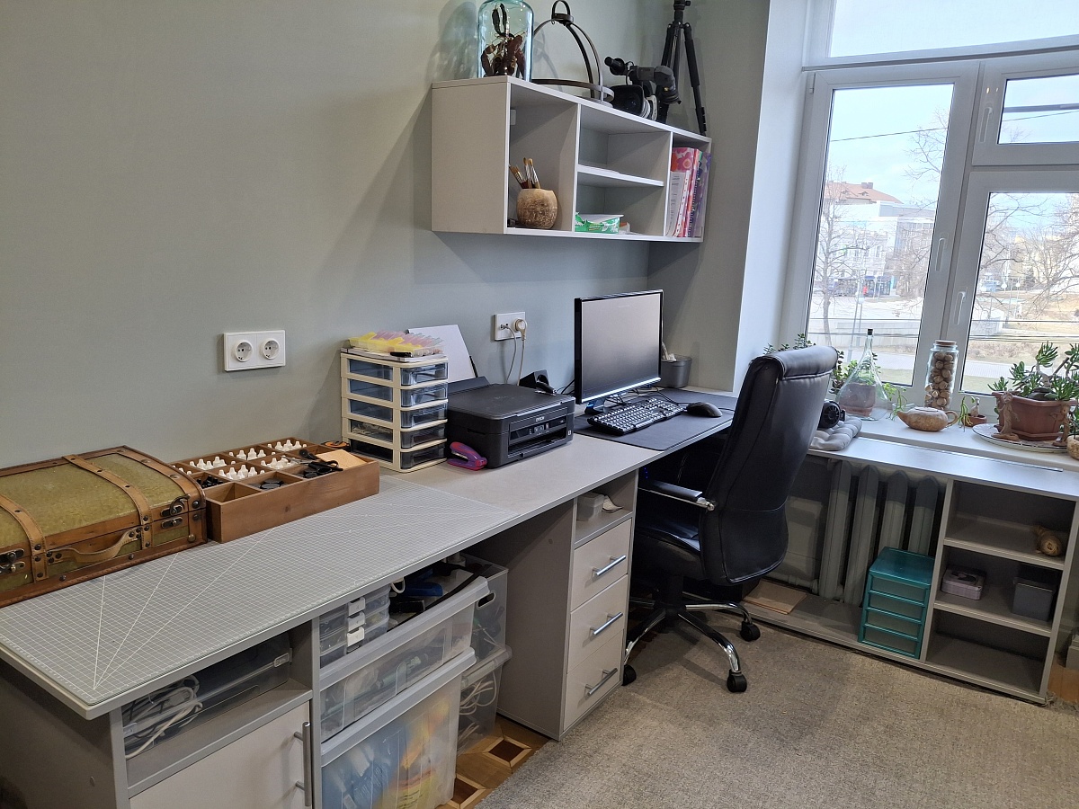 Отличный стол, копия икеевского стола Алекс. Только есть возможность изменить размеры, отделку, цвет, направляющие. Заказала одновременно со стандартным стеллажом. Собрали сами без проблем. Прикрутили к подстолью с подъемным механизмом. Получился очень комфортный мини-офис на дому.