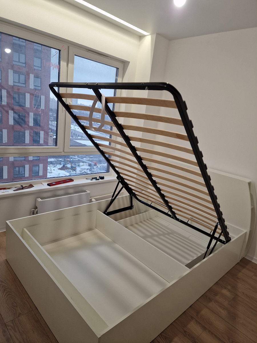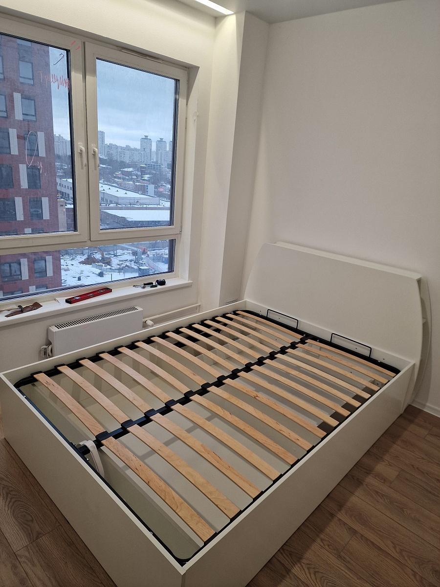 Удобное изголовье с полками - подойдёт, если у вас нет места для тумбы.Стандартная кромка очень хрупкая, будьте аккуратнее, когда собираете (я случайно задел изголовье во время крепежа зеркала рядом с кроватью, повредил край кромки).Инструкция на одном листе в очень плохом качестве, пришлось запрашивать по почте подробную инструкцию.