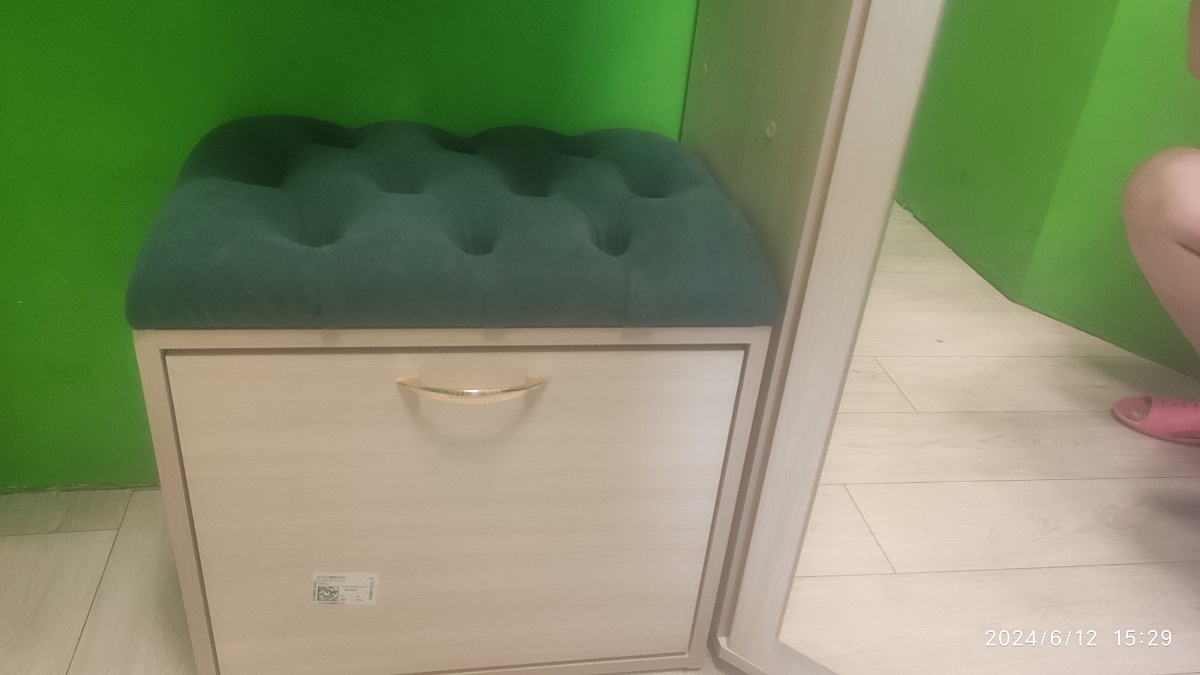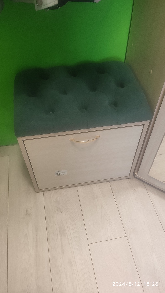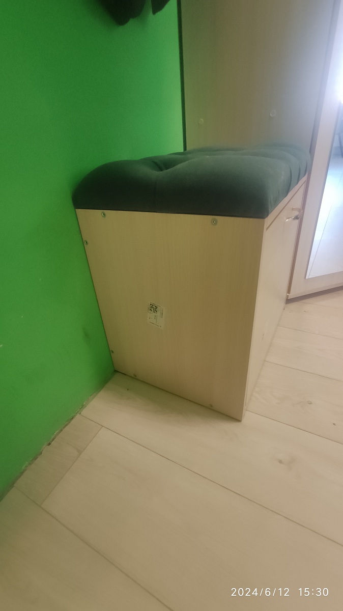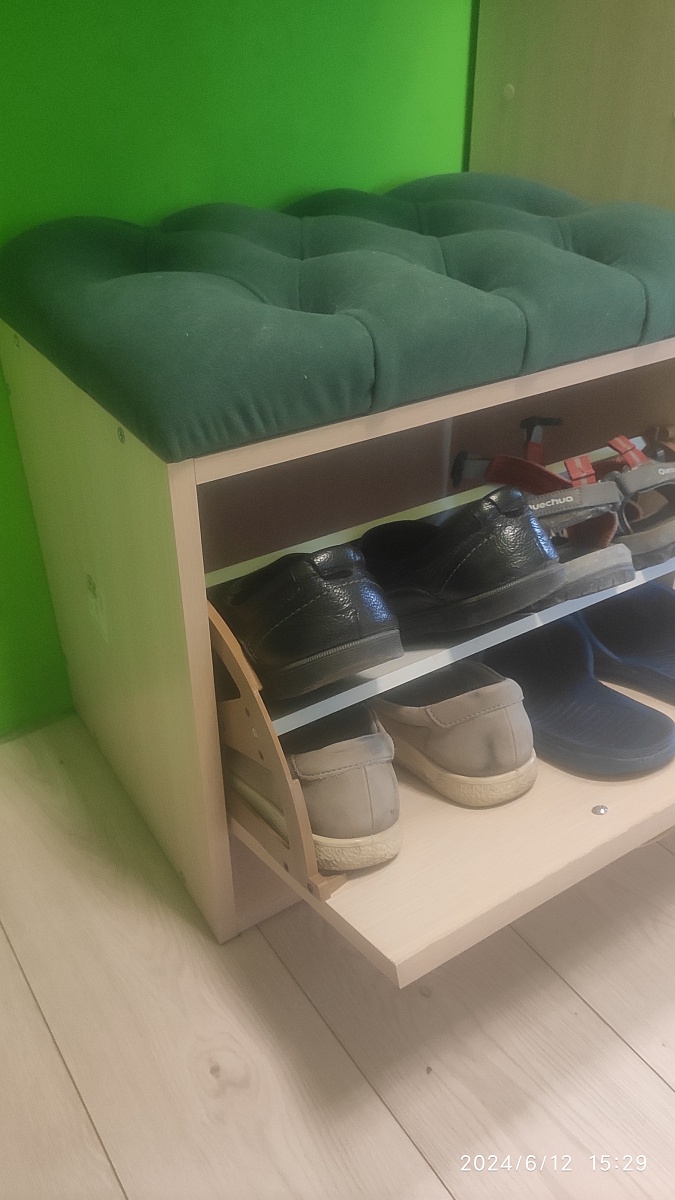 Номер заказа 00000691648  тумба оказалась очень удобной. По моей просьбе её сделали немножко уже, чем было заявлено в стандартных размерах абсолютно бесплатно. Тумба очень надёжная, намного удобнее, чем узкие тумбы. В эту тумбу нормально влезает обувь 43 размера. Ну единственное, что на велюр очень хорошо прилипает кошачья шерсть. Но к когтям устойчиво.