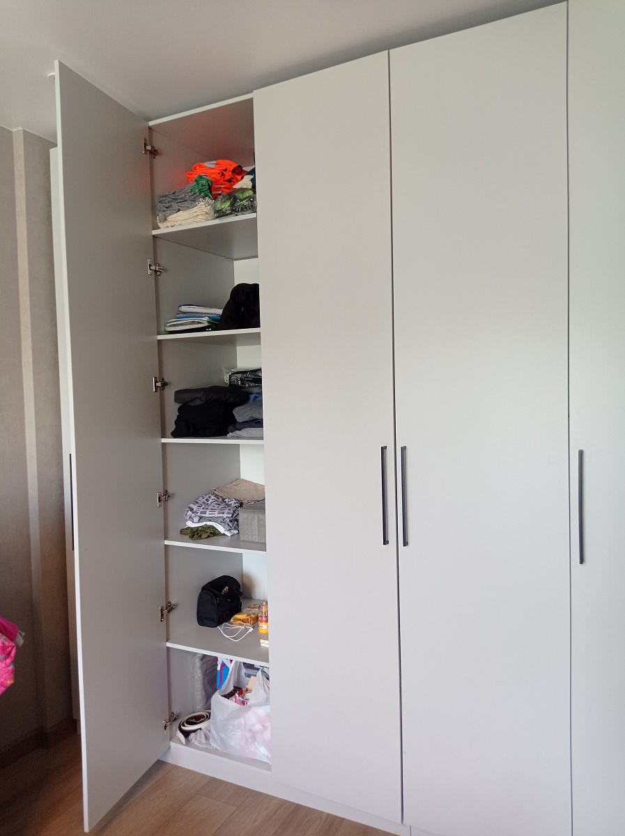 Шкаф заказал на лоджию. Цвет белый смотрится стильно и дорого. Полностью все поменял под себя в конструкторе. Наши размеры: высота 2,6м. Глубина всего 60 см, ширина 150. Для таких параметров цена-подарок. Хороший шкаф, нам нравится. Удобная конфигурация и наполнения комплектующими. Доставили в срок.Сборка быстро и качественно. Сборщики компетентны и деловиты - собирают быстро. Порекомдовал друзьям и знакомым.