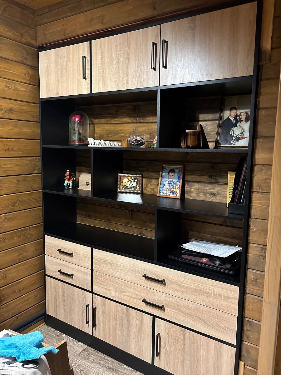 Собрали комод, который сами для себя придумали на основе имеющихся образцов с 9-ю выдвижными ящиками. Фасады с фрезеровкой выполнены и подогнаны очень хорошо. Рисунок был сложный, но все совпало и получилось очень красиво. Отдельное спасибо за нижнюю планку фасада на цоколь- получился единый рисунок и современный внешний вид. Есть замечания по глубине ящиков, т.к. в собранном виде ящики не доходят до задней стенке на 6 см. Как-то этот момент не согласовали. Думаю, сто можно было на 5 см точно увеличить глубину ящиков, что было бы функциональнее, т.к. комод это не только фасад, но и шкаф для вещей, постельного белья и Эти 5см я учитывала при выборе размера комода. Если проблема в фурнитуре, то можно было это обсудить. А так, нам теперь с этим жить. Ещё сборка тоже в некоторых местах не продумана ( центральные внутренние отверстия под симметричные направляющие почему-то одно сквозное. Получается, что направляющие с одной стороны прикрутили, а потом с другой стороны центральной стойки в те же отверстия нужно прикручивать с другой стороны направляющие. Шурупы ломаются друг о друга и конструкция кривая. Пришлось подгонять самим. Не хватило 2-х больших шурупов для сборки корпуса. Думаю, что лучше больше класть, чем меньше. Это уже 2-й наш большой заказ. В любом случае большое спасибо, что Вы воплощает наши мечты! Отдельное огромное спасибо инженеру-конструктору и мастеру по внешнему виду фрезеровки. Получилось ОГОНЬ!