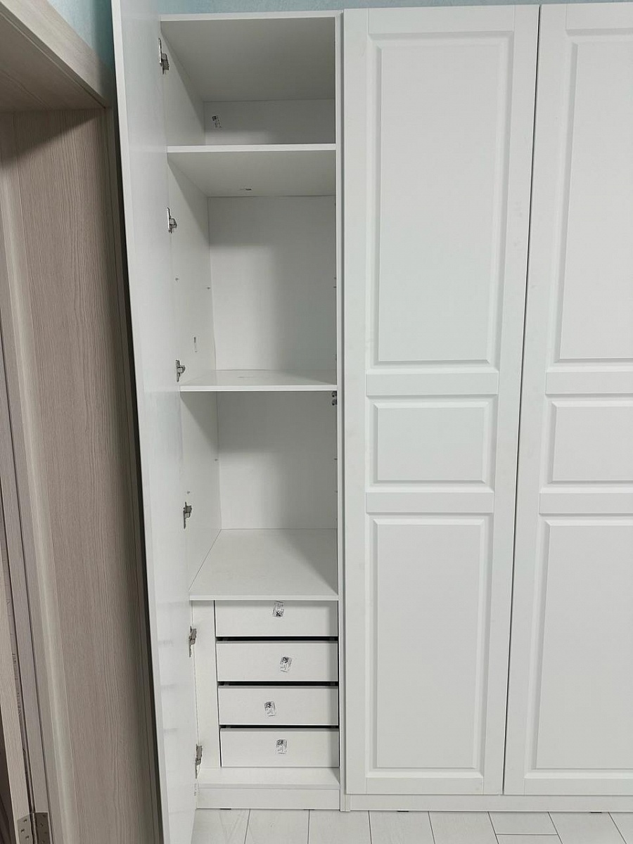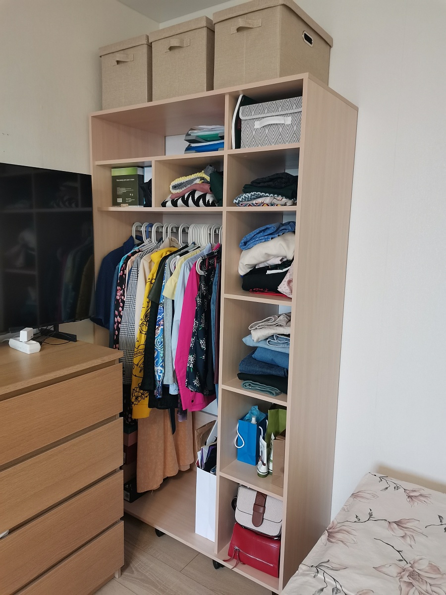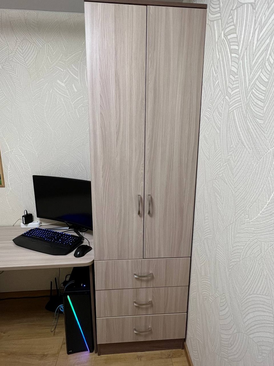 Заказ №443070. Заказывал данный шкаф на стадии ремонта. Благодаря возможности корректировки размеров он идеально вписался в спальную зону вместе со столом, который был заказан одновременно с ним. Ящики со временем стали хуже закрываться, а в остальном всё хорошо.