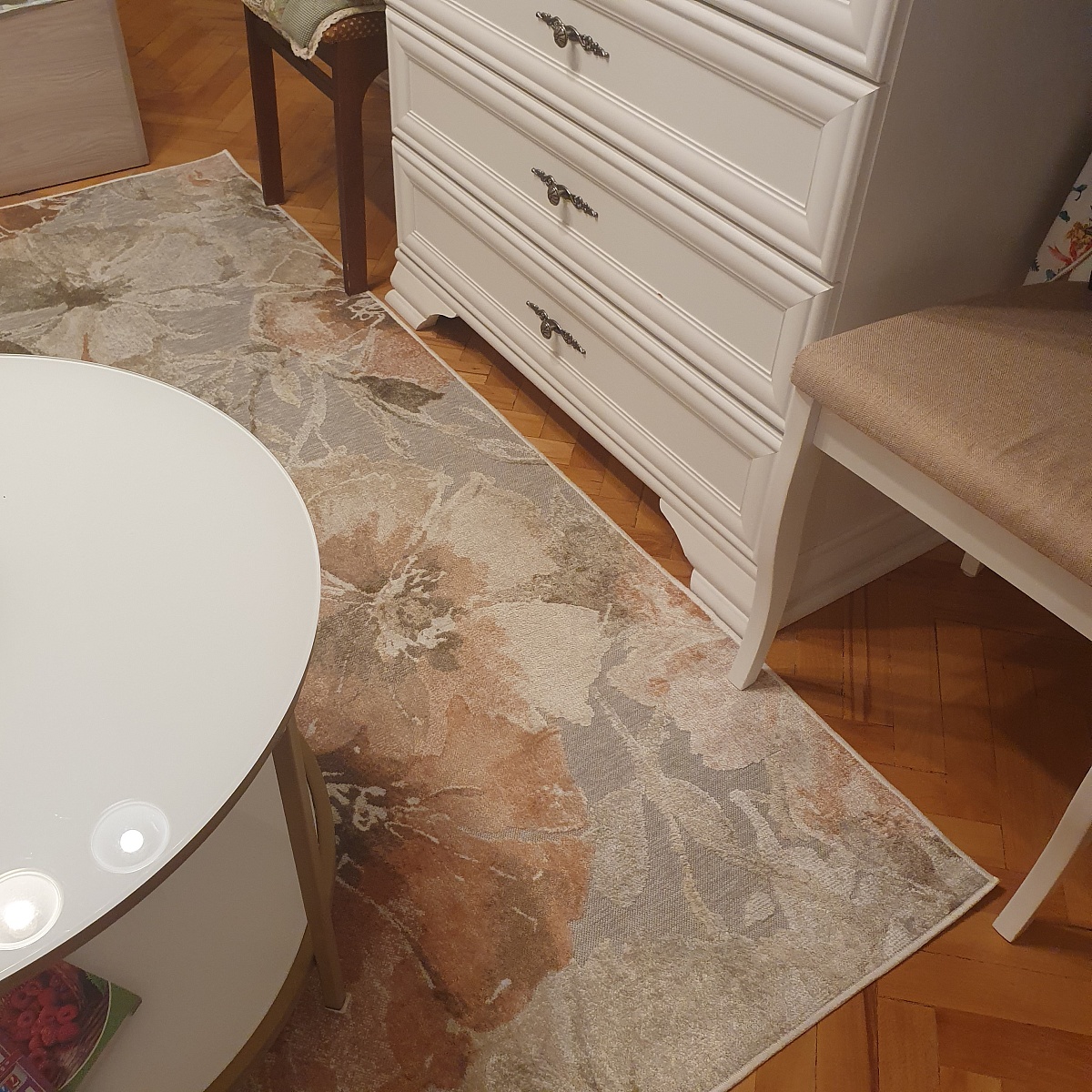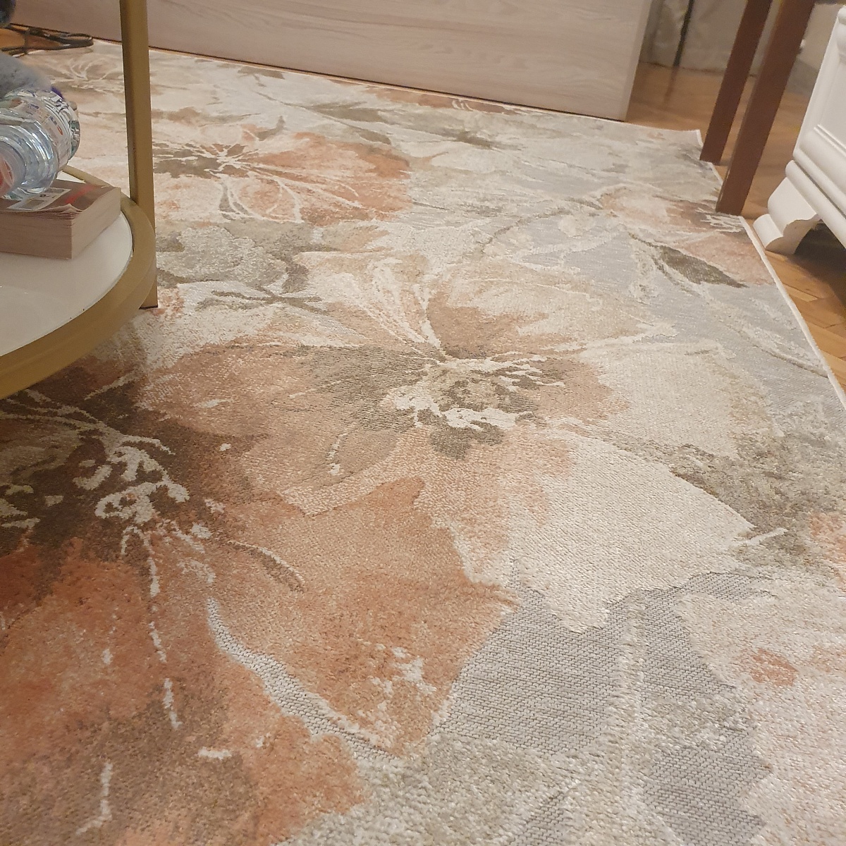 Ковер цена-качество очень удачный. Не яркий, добавляет нежность. На ощупь, голыми ногами, как шелк. Да, он не плотный и толстый, но и не тряпка. То, что нужно. От пола не отходит, не скользит, пылесосится хорошо. Мы довольны покупкой. Покупаои 135 на 195. С белой мебелью и медовым паркетом очень сочетается