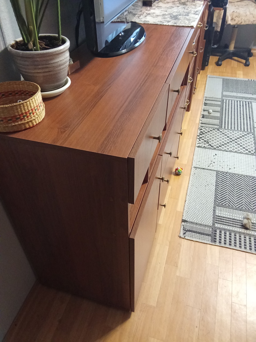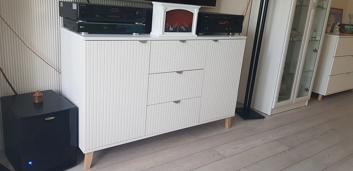Заказ 00000995695, Очень понравился данный комод. Мне нужны были конкретные параметры и мне терпеливо присылали эскизы. После согласования окончательного эскиза очень быстро пустили в работу. Водитель привез изделие даже раньше намеченного. Принимали заказ на улице, т.к погода позволяла, водитель терпеливо дождался)) Собирался достаточно легко, справились сами. Все супер, комод бомба. По цвету идеально совпал с имеющейся мебелью.